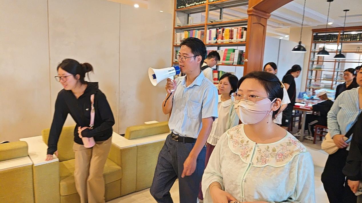 特别值得一提的是,两组同学于图书馆正门会师,互相问候交流,然后继续前往下一个参观点,充分体现了集体研学、共同探索的特点。