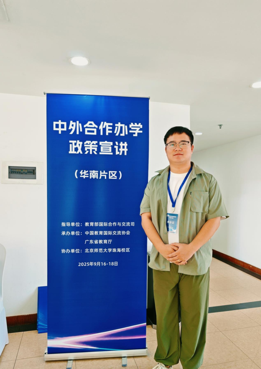 参会期间,侯永邸老师认真聆听了政策宣讲,并就办学实践中遇到的具体问题与主讲专家及兄弟院校同仁进行了深入交流。通过此次学习对中外合作办学的政策边界、质量保障体系及未来发展趋势有了更清晰、更全面的认识。此次参会是我院持续深化教育对外开放、加强内涵建设的重要举措之一。学院将充分吸收此次宣讲会的学习成果,结合本校中外合作办学项目实际,进一步优化管理机制,强化跨部门协同,确保项目依法依规、高质量运行,不断提升国际化人才培养能力与办学声誉,为服务海南自由贸易港建设提供更坚实的人才与智力支撑。