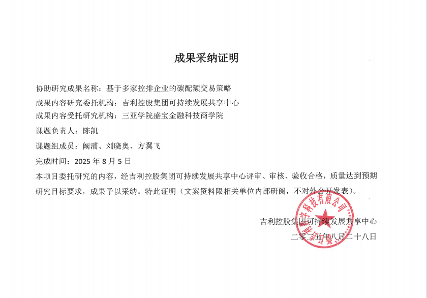 在“双碳”目标引领中国经济社会全面绿色转型的浪潮中,具备扎实理论功底与丰富实践经验的高素质复合型金融科技与绿色金融人才成为市场迫切所需。为积极响应国家战略,深化产教融合,提升教师实践教学能力与前沿行业洞察力,盛宝金融科技商学院实验教师陈凯于2025年7月28日至8月29日,赴浙江杭州吉利控股集团可持续发展共享中心进行了为期一个月的深度顶岗实践。此次实践不仅使教师个人能力得到淬炼,更产出了具有实际应用价值的科研成果,为学院相关课程建设与人才培养模式创新注入了强劲动力。