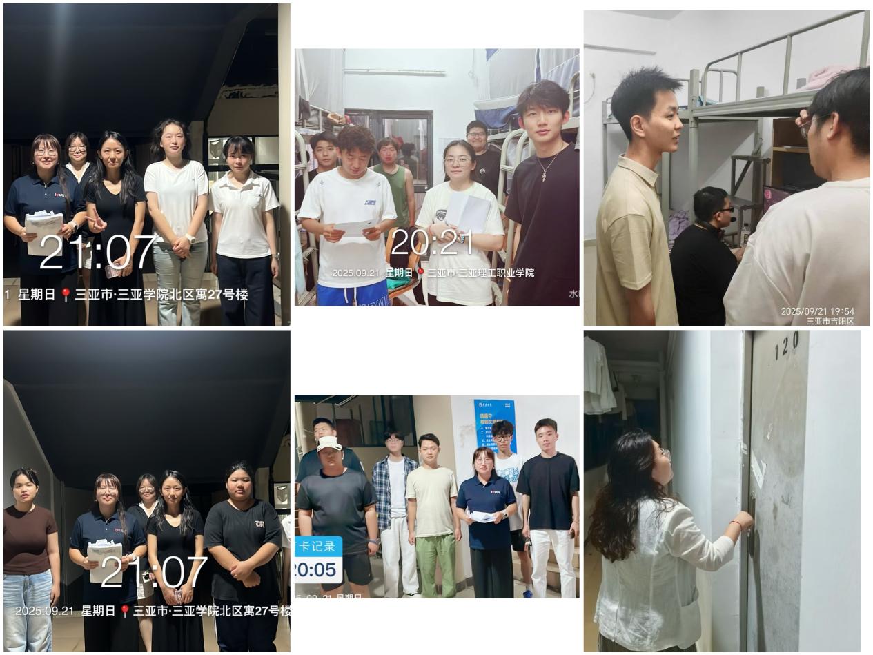 为深入了解新学期同学们的返校情况和新学期的学习、生活、安全等方面的情况,加强师生间沟通交流,营造安全、和谐、文明的宿舍环境,9月21日晚,三亚学院管理学院学工团队深入我院全体本科生和硕士研究生寝室,开展走访学生寝室活动。