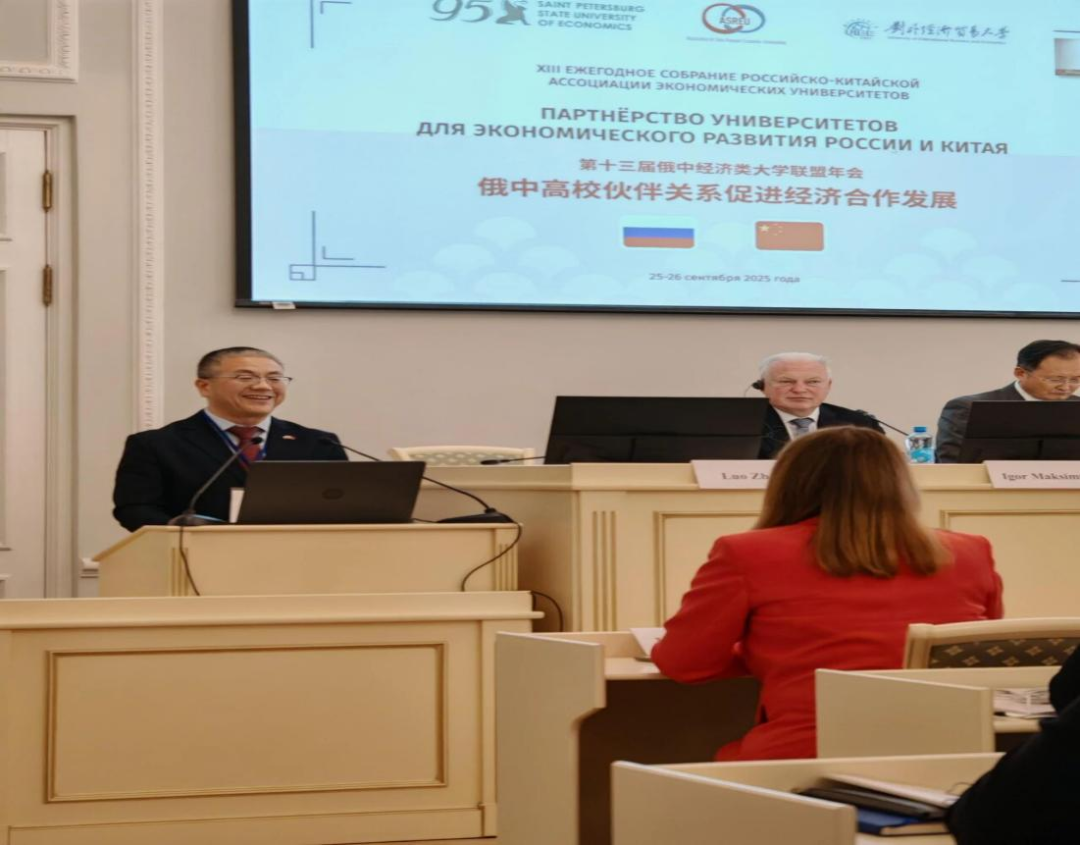 近日,应中俄经济类大学联盟邀请,受学校委派,盛宝金融科技商学院副院长陈晓昕、投资保险系副主任王爽于9 月 23 日至 27 日赴俄罗斯圣彼得堡国立经济大学,出席第十三届中俄经济类大学联盟年会开幕式,积极搭建校际交流桥梁,助力中俄教育人文合作。
