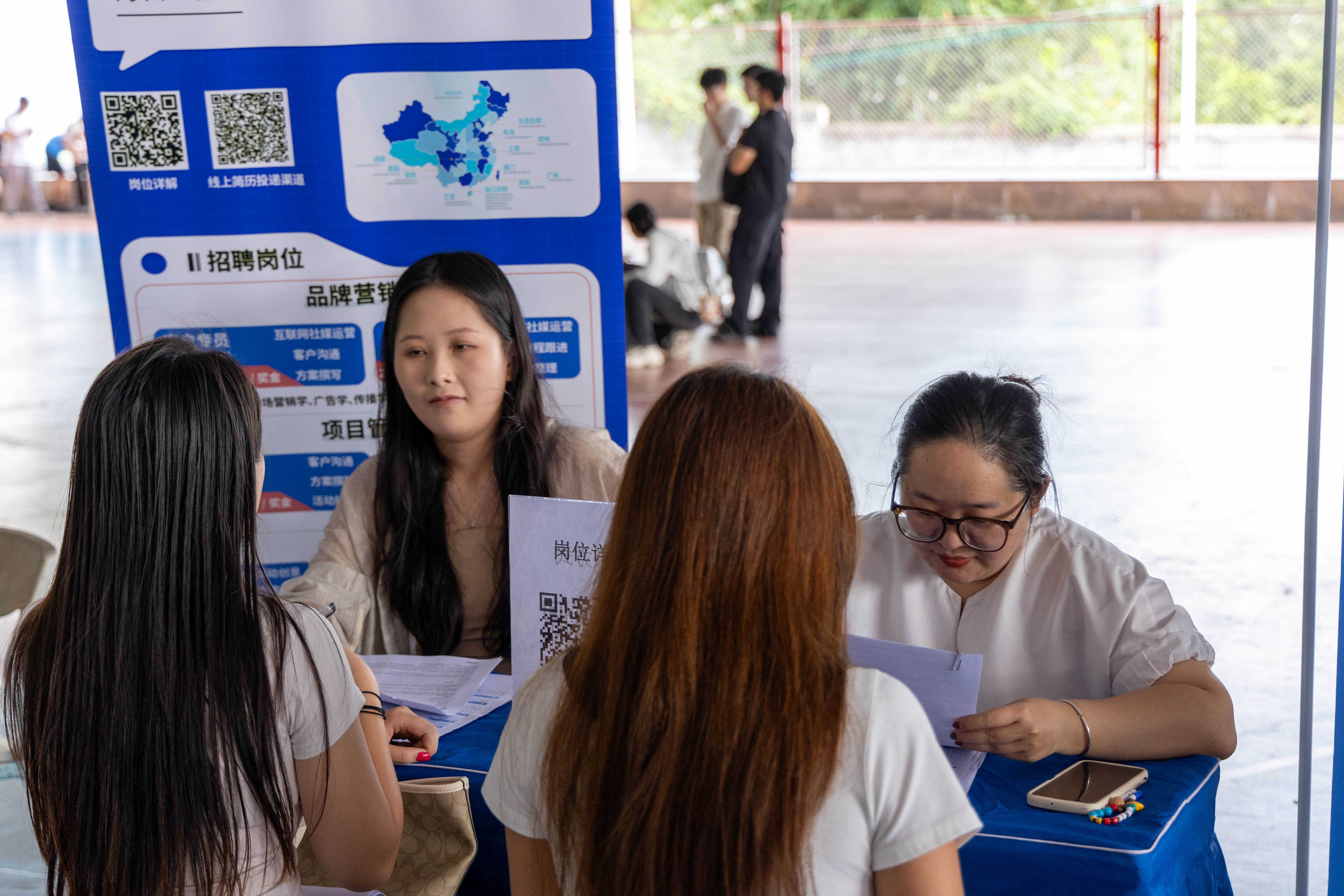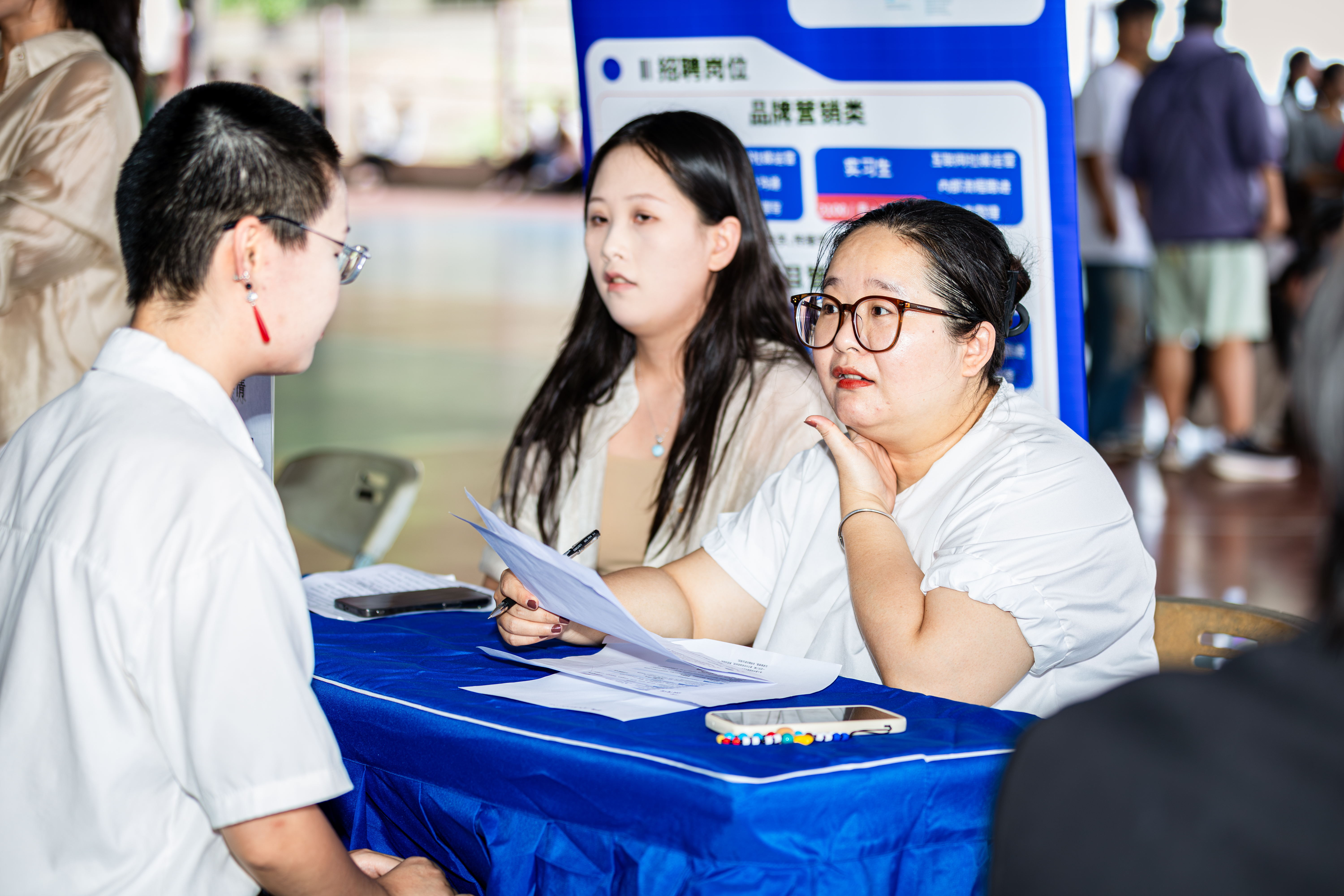 招聘会现场人头攒动,气氛热烈。包括智海王潮会展传播集团在内的 36 家优质企业集体亮相,携带海量岗位面向三亚学院学子招聘。其中,智海王潮会展传播集团重点推出品牌营销、项目管理、创意设计三大类核心岗位,岗位方向覆盖客户专员、文案策划、平面设计等多个领域。为彰显引才诚意,企业不仅提供丰厚的薪资待遇,还配套完善的工作保障体系。此外,展架上展示的全国布局地图,让学子直观了解企业业务范围;线上简历投递二维码的设置,则进一步简化求职流程,提升招聘对接效率。