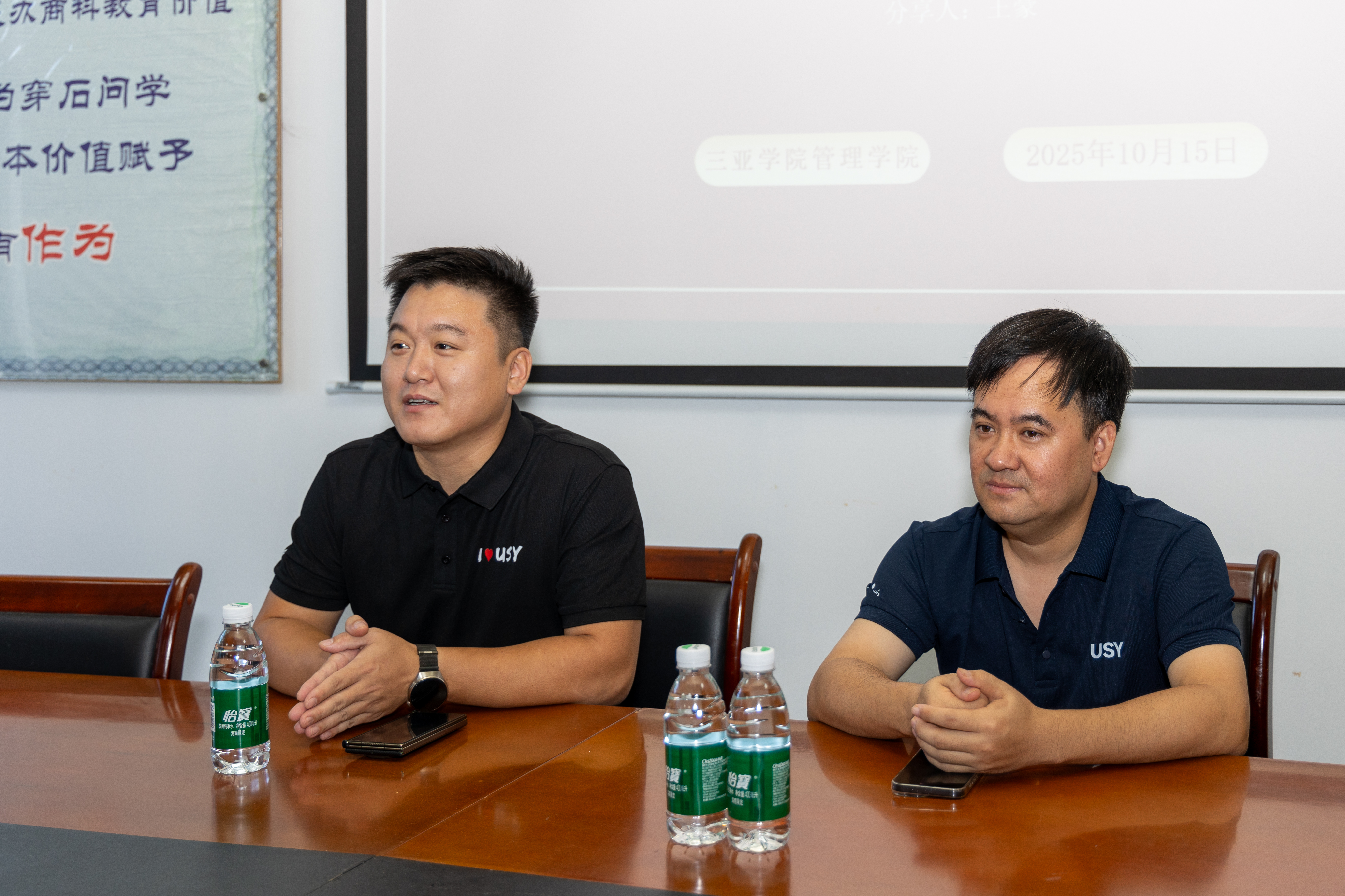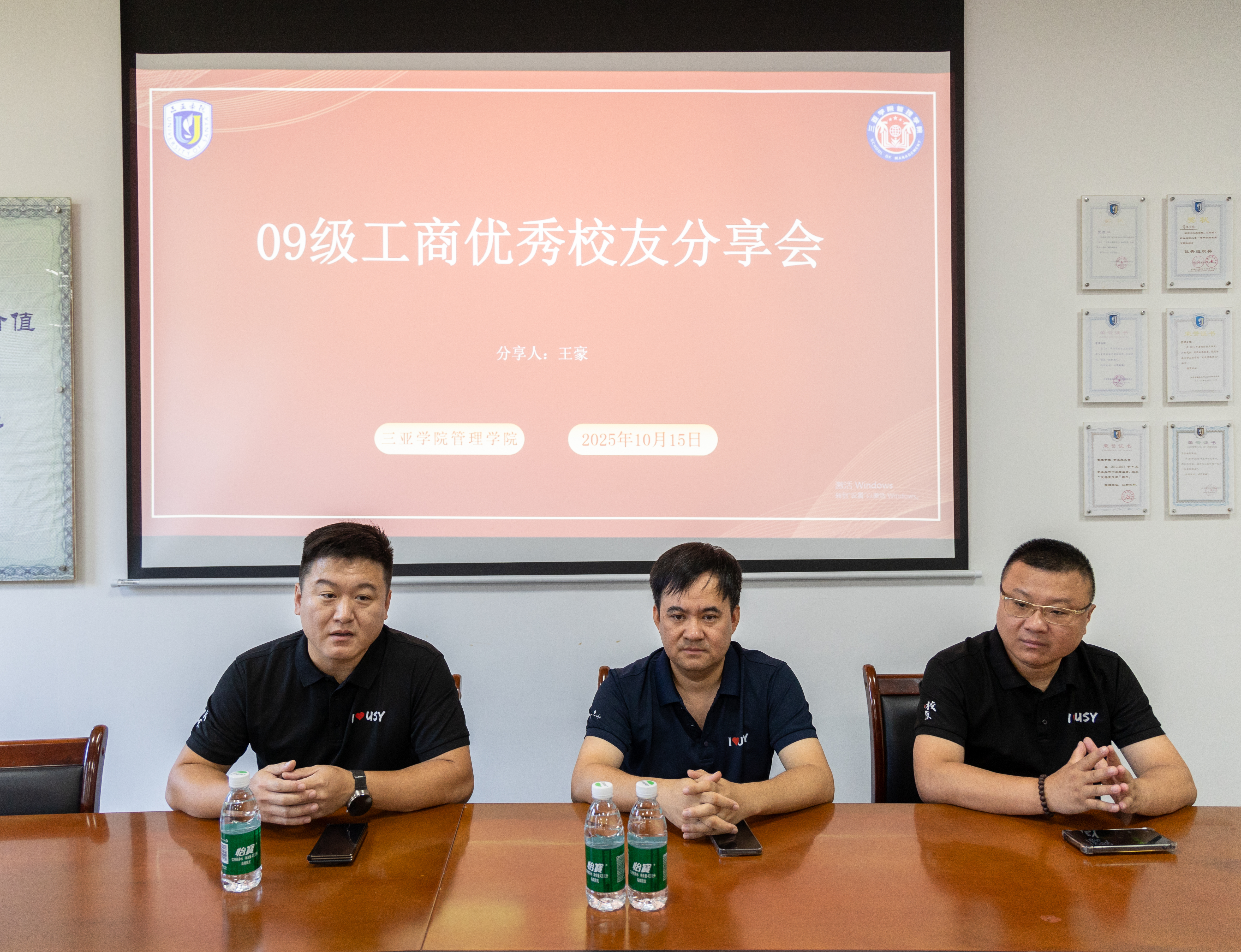 10月15日上午,社科楼209教室座无虚席,我院2009级工商管理专业杰出校友、三亚学院校友会河南校友分会会长王豪重返母校,为我院2025级工商管理等专业学子带来了一场干货满满的成长经验分享会。作为深耕工业服务与教育文化领域多年的行业先行者,王豪学长从校园理论扎实积淀到商业实践稳步深耕的鲜活经历,为在场学子送上了极具价值的成长指引。三亚学院校友办主任王翔、管理学院党总支副书记陶信伟出席了本次活动。