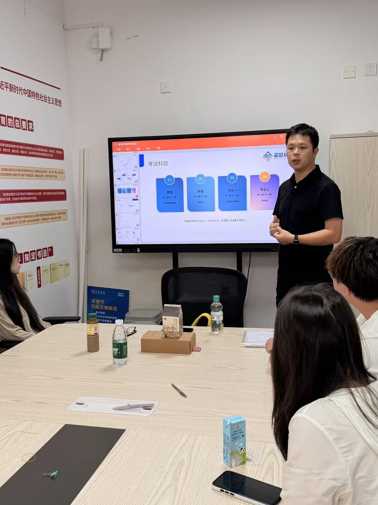 10月22日周三上午十点,为进一步促进2026届毕业生高质量升学,盛宝金融科技商学院考研专场讲座在北16一站式社区开讲。这场讲座聚焦研究生考情分析、院校专业选择等核心问题,旨在为考研学子拨开迷雾,明晰备考与择校方向。本次讲座由芯位培训考研规划老师刘文强主讲。刘老师深耕考研培训行业14年,拥有丰富的择校择专业经验,助力百位同学成功上岸。