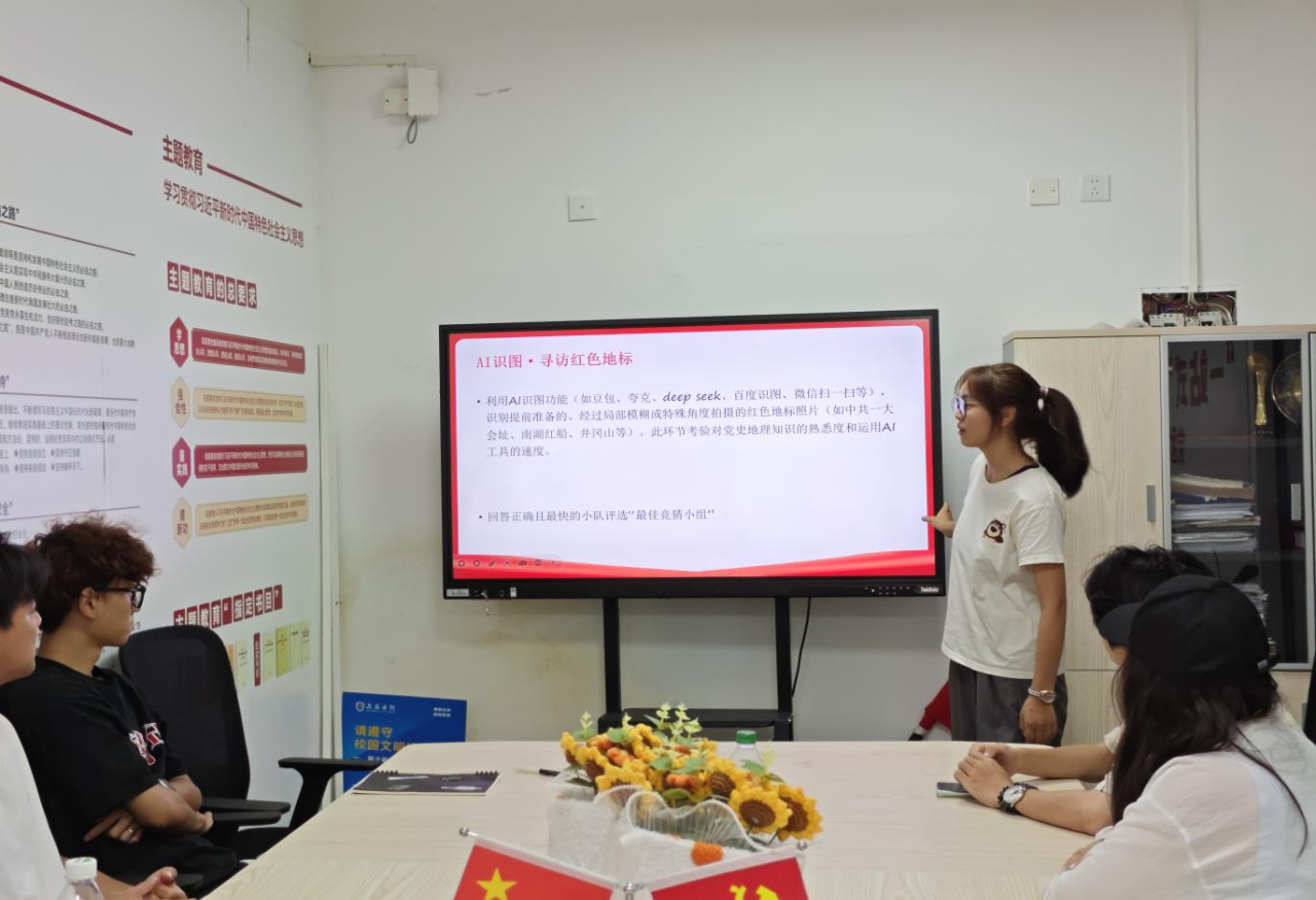 会议伊始,实践部部长裴梦琳同学为我们介绍了下本次红色文化学习会的内容,探讨如何以创新科技为引擎,驱动红色文化的传承驶入新的广阔天地。随后,活动进入了别开生面的互动体验环节。第一个环节是“红色记忆快问快答”,同学们需要通过屏幕上快速闪现的经典红色历史照片,准确识别出其所对应的重大历史事件。从开国大典的珍贵瞬间到长征路上的关键节点,一张张老照片不仅考验着大家的党史知识储备,更在争分夺秒的抢答中,重温了那段波澜壮阔的岁月。