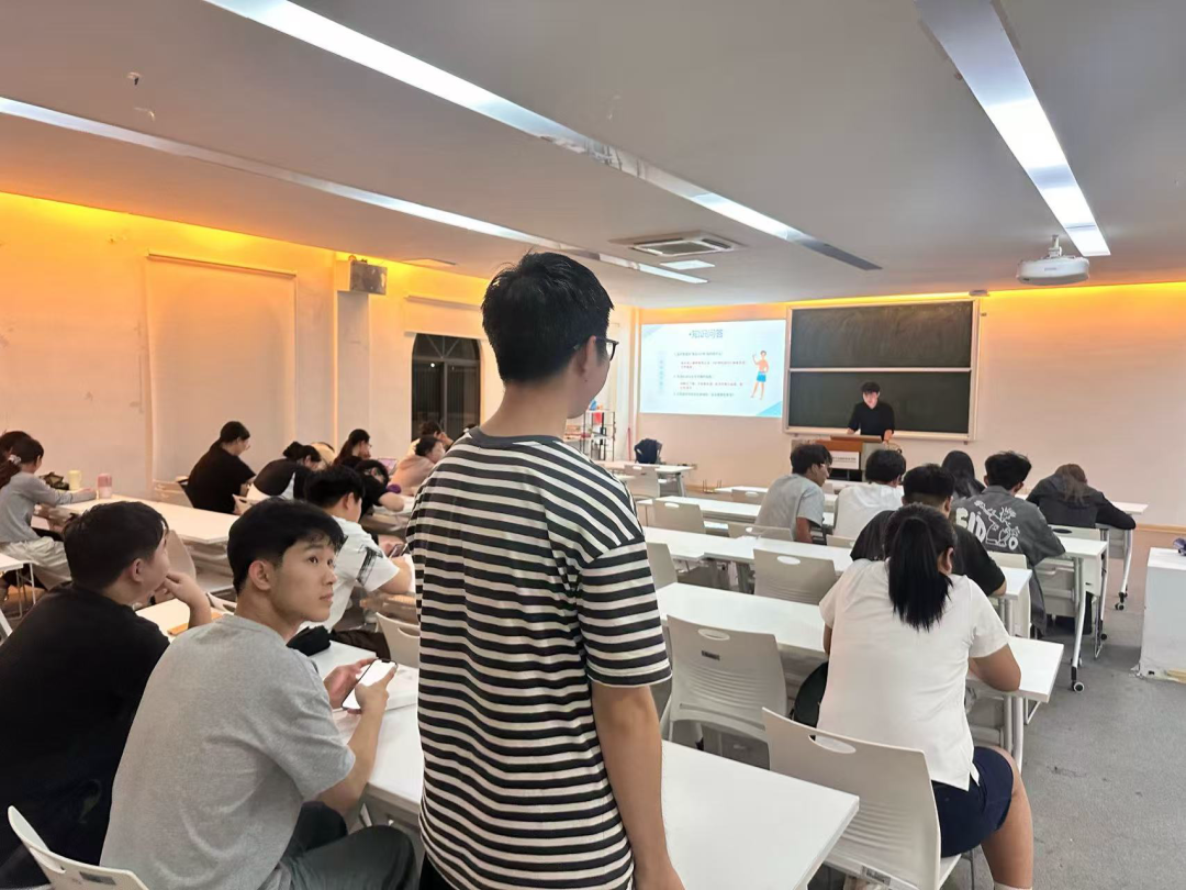 活动邀请学生干部,围绕防溺水安全主题,从溺水事故的危害、易发场景、预防措施、应急救援等方面展开系统宣讲。课堂上播放自动体外除颤器(AED)使用方法讲解、应急急救流程、心肺复苏(CPR)规范操作关键急救视频,为同学们普及自救意识以及安全防护。学长结合真实案例,详细讲解了野外水域、陌生泳池等场景的溺水风险,强调“六不准”防溺水准则(不准私自下水游泳、不准擅自与他人结伴游泳等),提高了同学们的安全意识。 在互动环节,学生们积极应答,就日常生活中遇到的涉水安全疑问与讲师交流,现场氛围热烈。通过案例分析、情景模拟,学生们深刻认识到溺水事故的严重性,进一步增强了安全防范意识和自我保护能力。