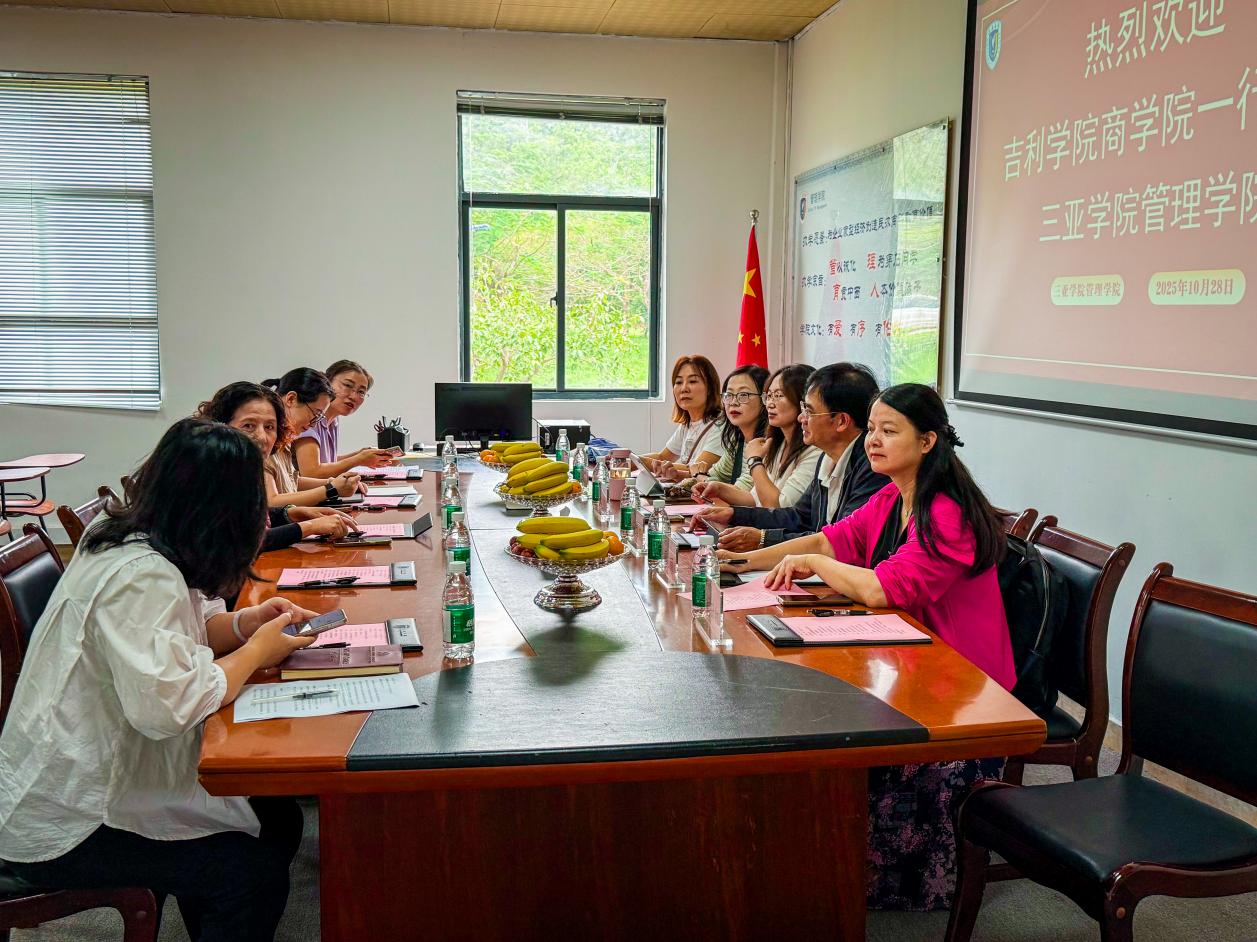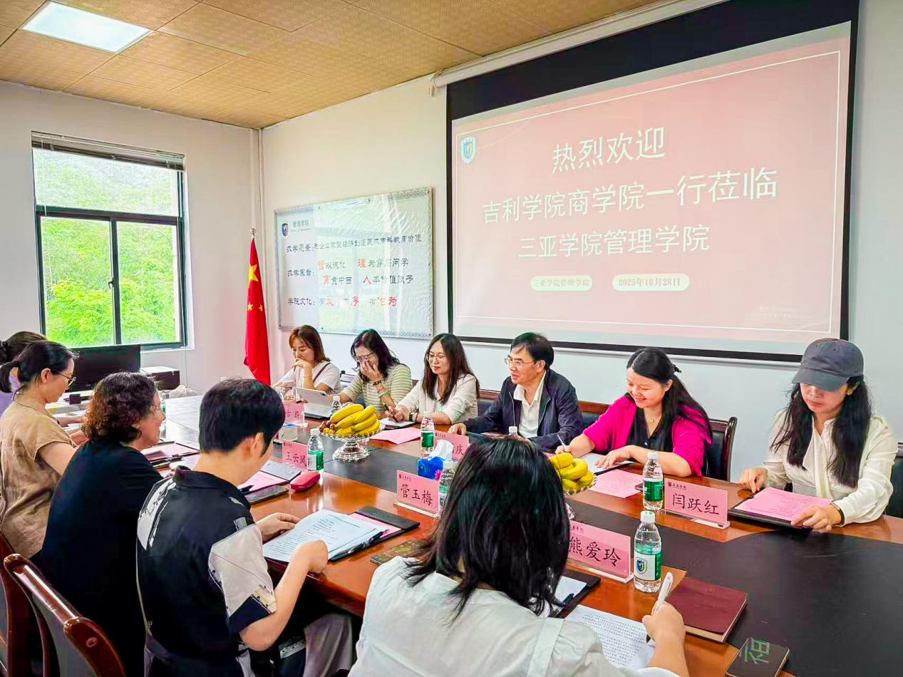 近日,吉利学院商学院与三亚学院管理学院在三亚学院书新2号楼206会议室开展交流座谈。此次座谈以“深化院校合作、共促教育高质量发展”为核心,通过实地参观、经验分享、深度研讨等形式,搭建起两校学科建设与教学实践的交流桥梁。