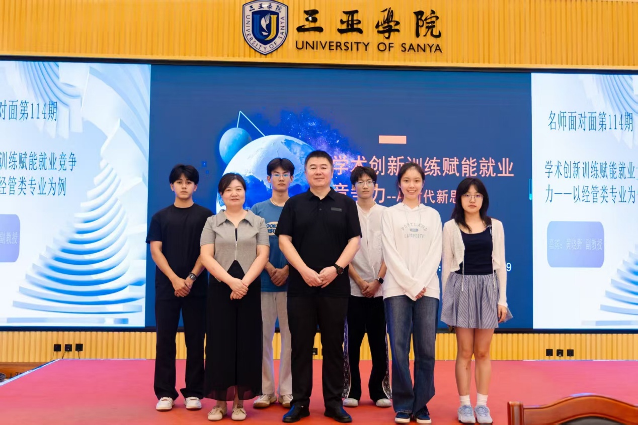 活动尾声,黄晓野博士与参与学子亲切合影留念,为本次“名师面对面”画上圆满句号。此次讲座不仅帮助学子清晰把握AI时代的就业趋势与风险,更提供了以学术创新赋能职业发展的具体路径,为三亚学院学子未来的职业规划与竞争力提升注入了新的思路与动力。