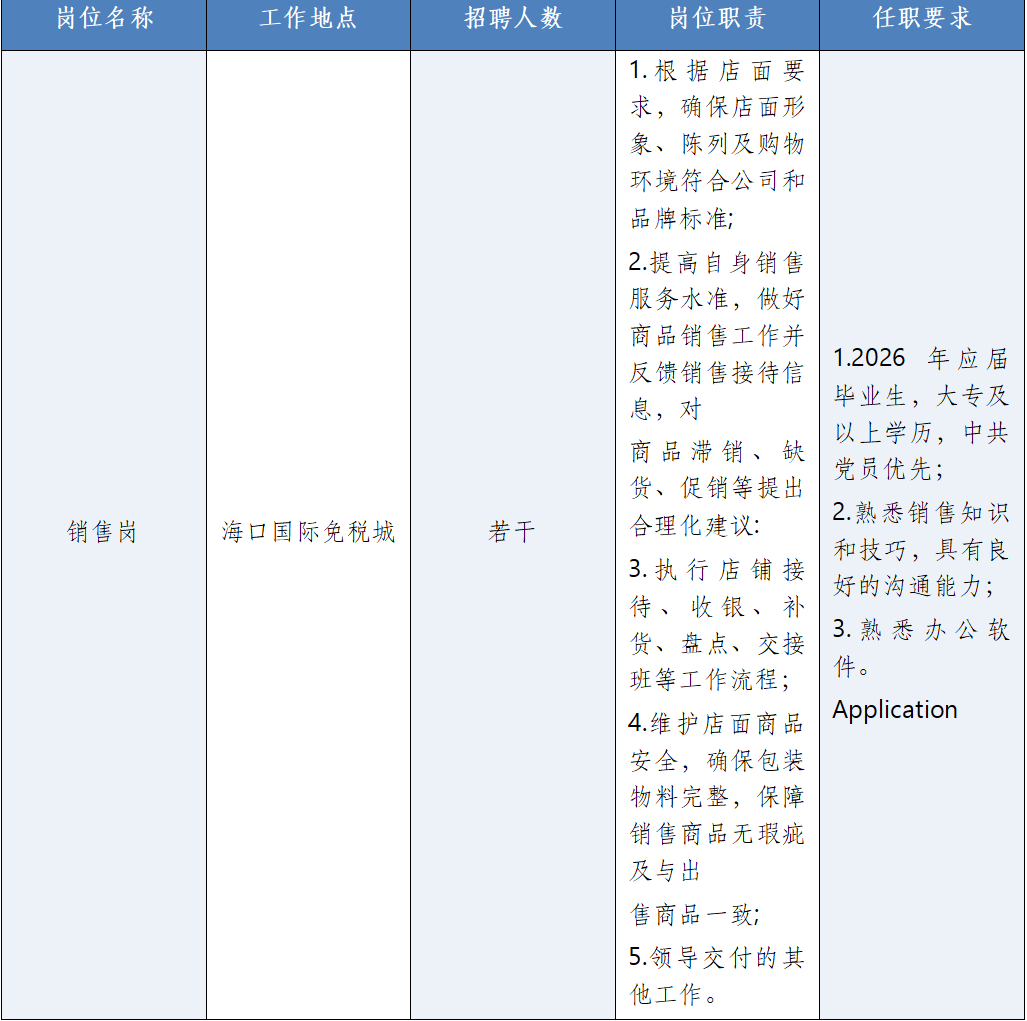 招聘岗位及要求: