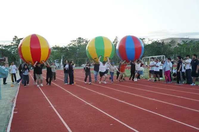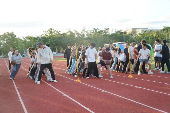 “协作竞技” 环节正式拉开帷幕,8 项趣味项目轮番登场,成为整场活动的 “高光时刻”。“滚雪球” 游戏里,大家从生疏到默契,一步步 “壮大” 队伍,笑声里满是团结的温度;“胯下运球” 项目中,党员们弯腰配合、灵活穿梭,汗水浸湿衣衫却依旧笑容灿烂。而最引人瞩目的当属拔河比赛—— 鲜红的绳索居中绷紧,两队队员紧握绳柄、双脚蹬地,,场边助威声震耳欲聋,将 “协作聚力” 的主题展现得淋漓尽致,充分彰显了学院党员师生昂扬向上、敢拼敢闯的精神风貌。