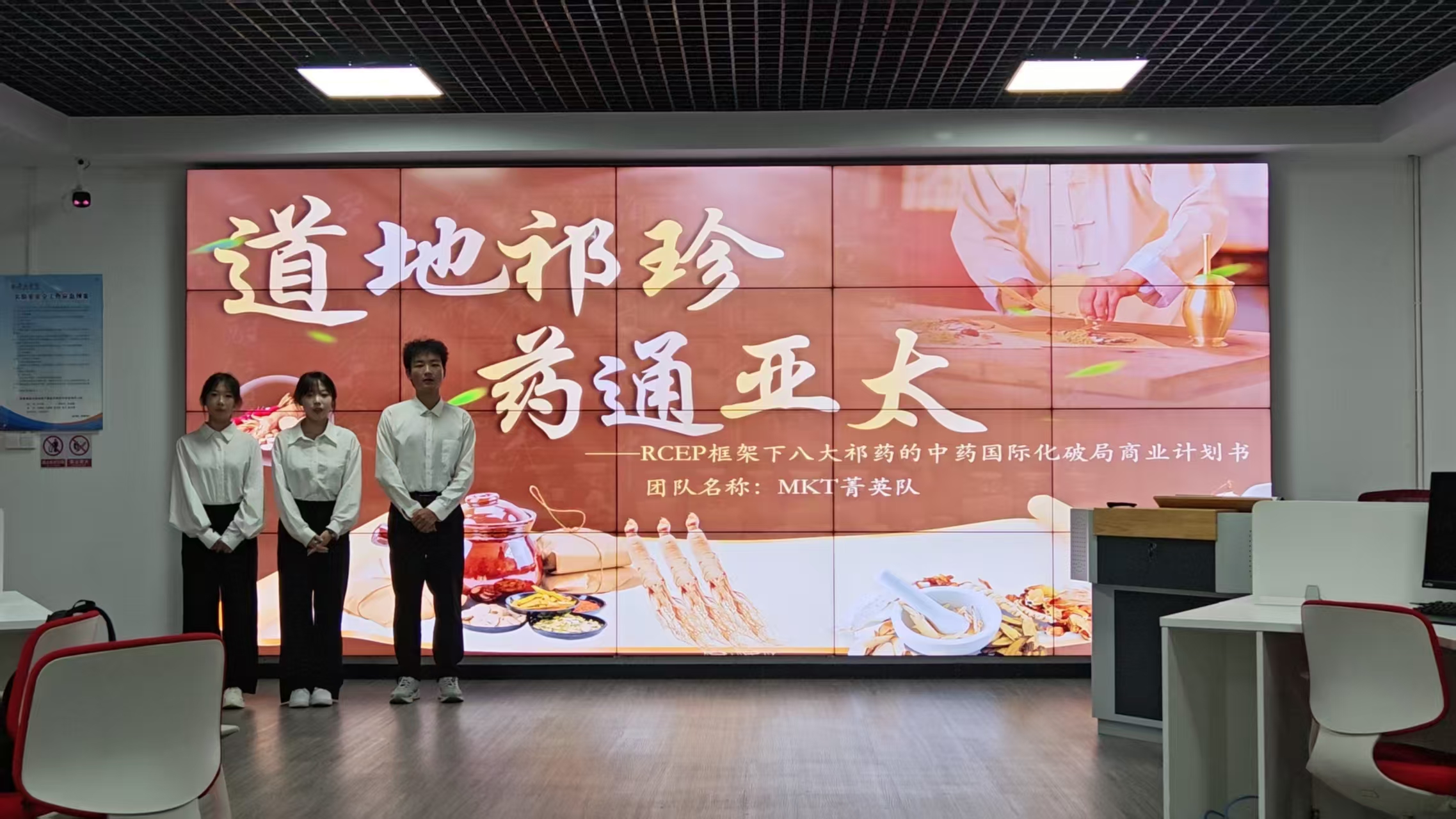 此次管理学院共派出由45名学生组成的11支代表队参赛,在张成甦、管玉梅、卫静静、王新爱、宋志章、刘艳萍、杨雅恬、罗灿、黄蕊、符彩花、李怡蒙等指导教师的全程悉心指导下,团队成员历时三个月深耕赛事:从聚焦RCEP区域贸易规则的政策解读,到精准定位目标市场的消费需求;从搭建多维度的产品推广体系,到构建科学严谨的盈利测算模型,每一个环节都凝聚着师生的心血与智慧。最终,11个团队凭借逻辑严密的策划方案、数据翔实的市场分析和从容自信的现场答辩,在众多强手中崭露头角,斩获佳绩: