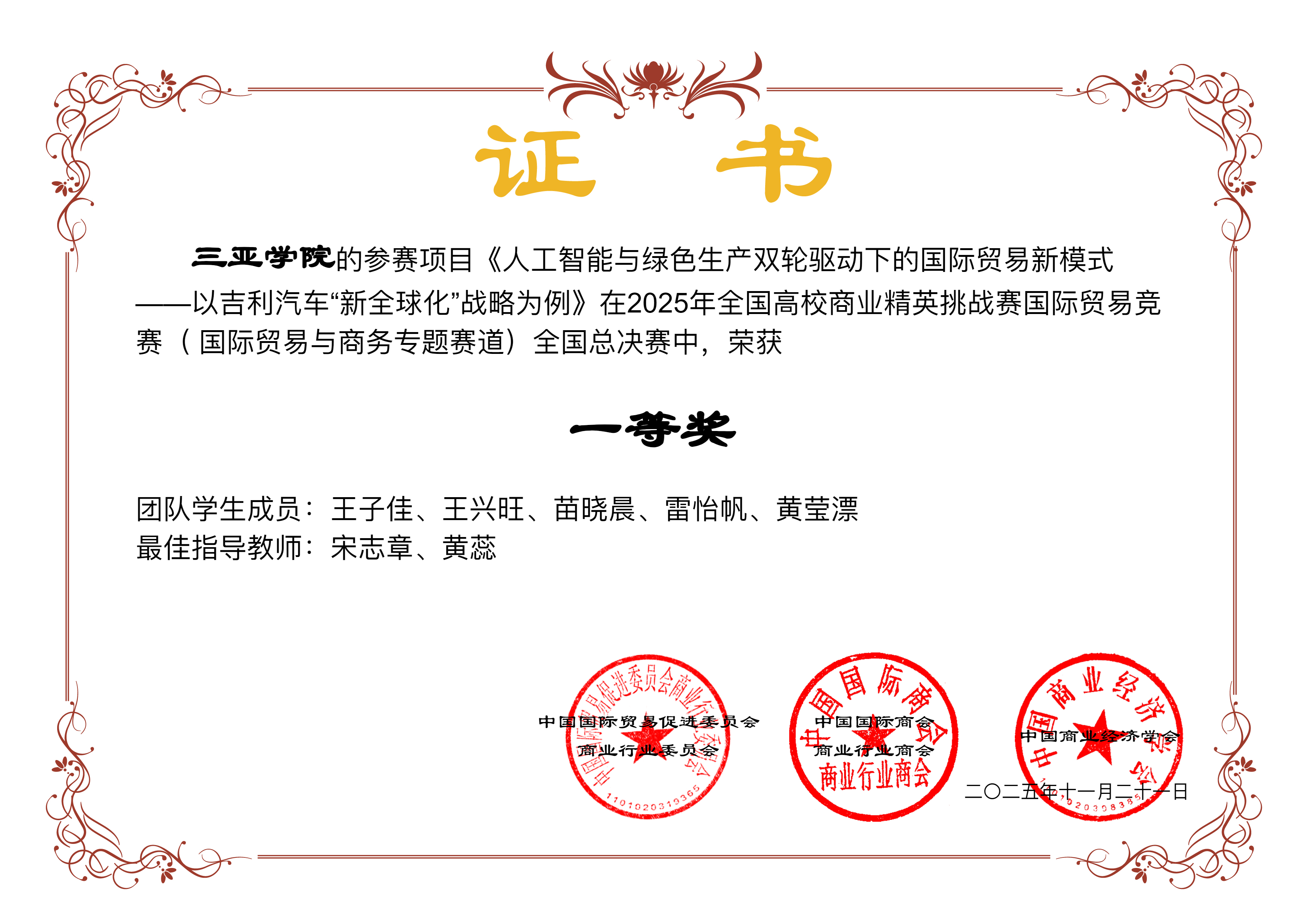 在全球AI技术革命与产业变革深度融合的当下,三亚学院管理学院紧扣时代发展脉搏,以“学生高质量就业、高质量升学和创新创业能力培养”为核心推行结构性教育教学改革。学院深耕产教融合战略,构建“理论教学+实践实训+竞赛赋能”的人才培养体系,着力打造兼具国际视野与实战能力的复合型应用型人才,此次竞赛的优异成绩正是这一育人理念的生动实践与有力印证。