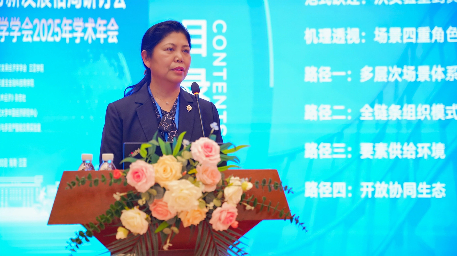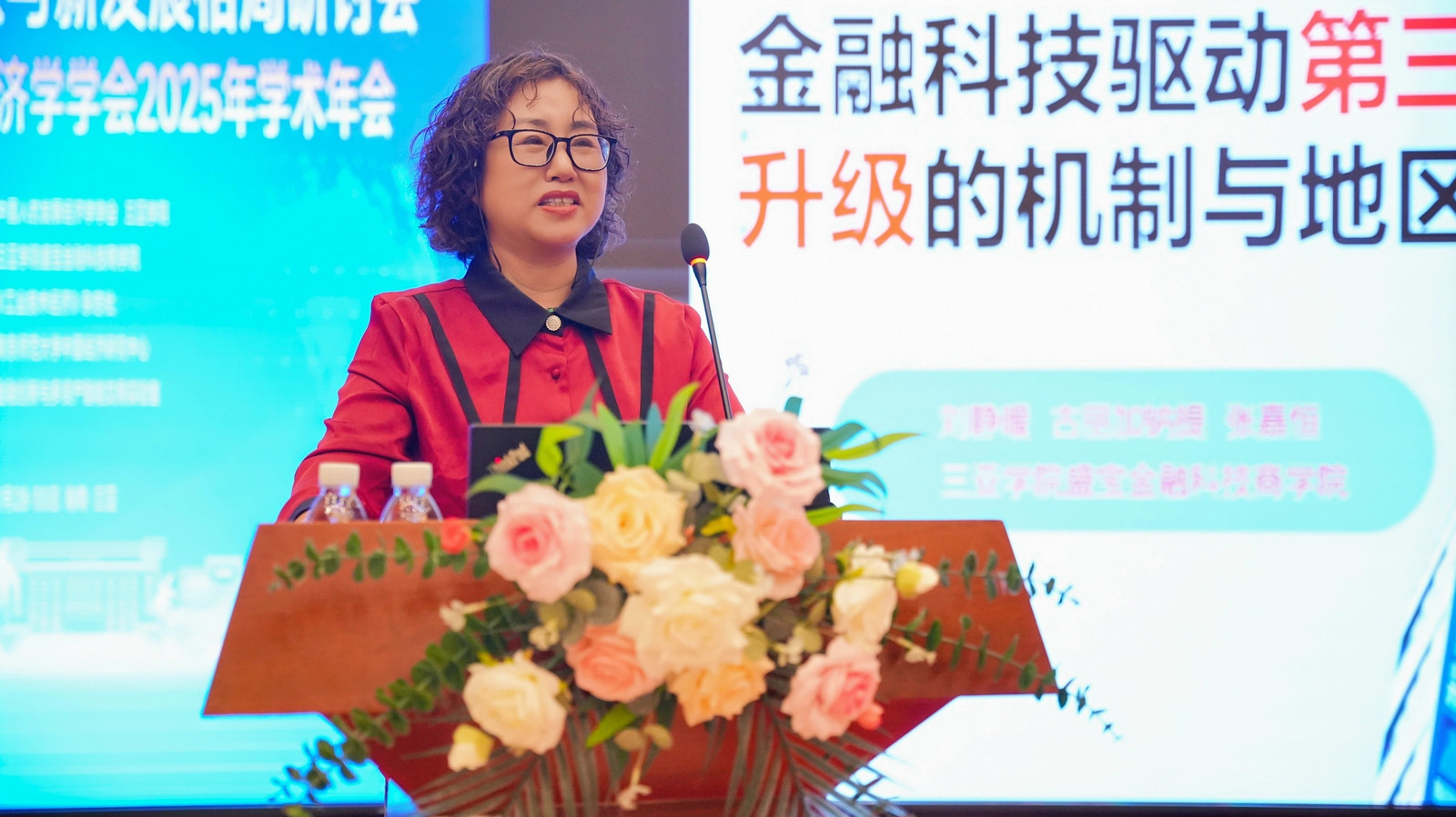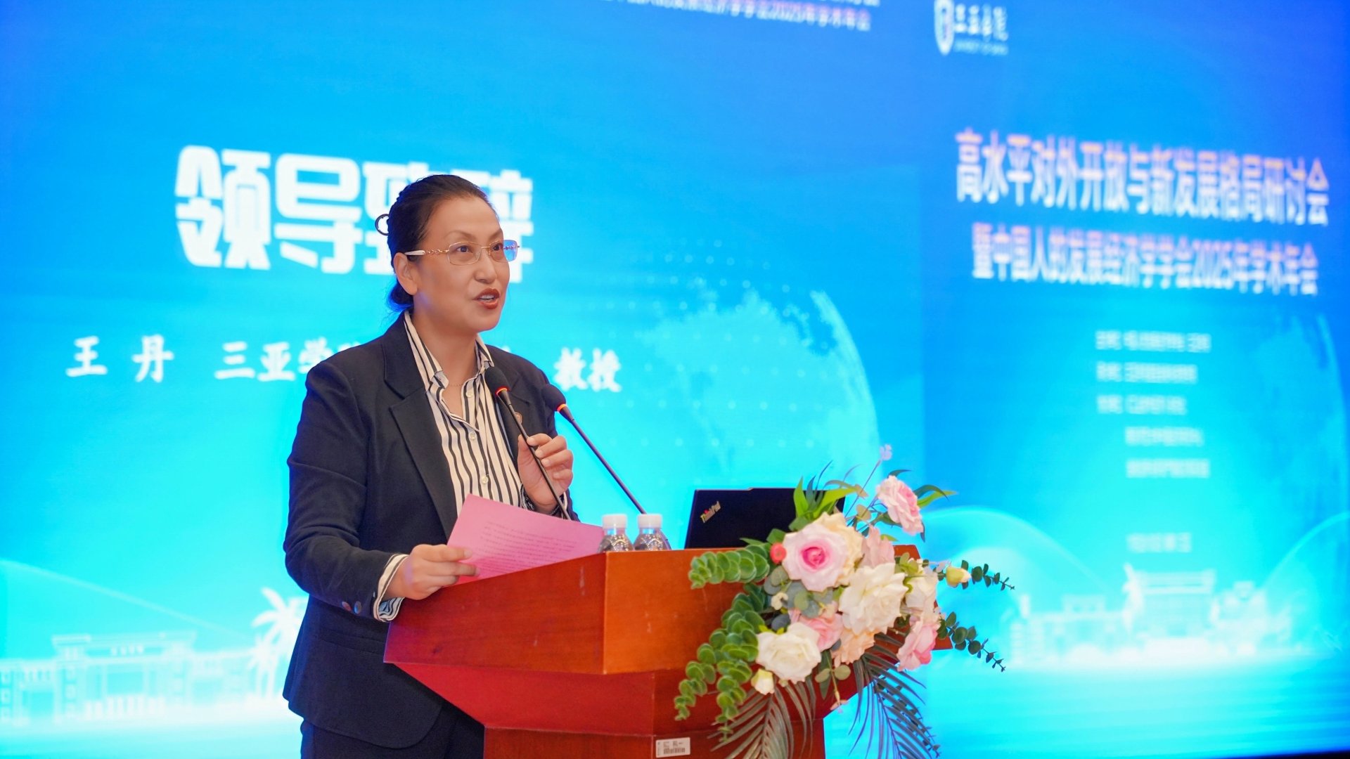 三亚学院执行校长王丹在致辞中对参会嘉宾表示热烈欢迎,对三亚学院的办学特色与发展成果进行介绍。她指出,本次年会聚焦前沿议题,深度契合国家发展战略与海南自贸港建设时代脉搏,意义重大。衷心希望各位专家学者在会议期间畅所欲言、深入交流,为推动中国特色社会主义经济理论的创新与发展贡献智慧。同时,也希望以此次年会为纽带,进一步加强三亚学院与各位专家、各兄弟院校的深度合作,共同为构建中国特色哲学社会科学学科体系、学术体系和话语体系贡献力量。