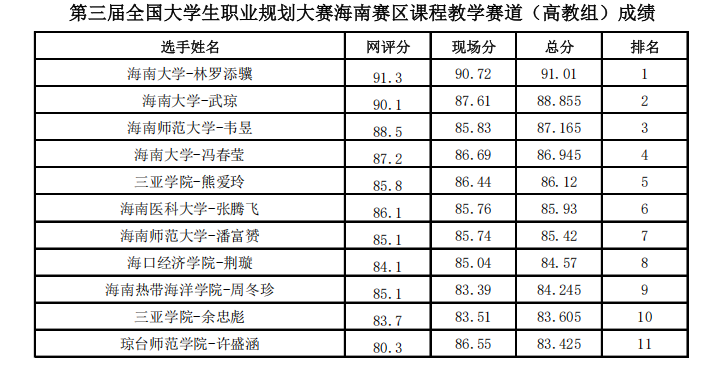 12月6至7日,管理学院熊爱玲、余忠彪两位老师代表学校参加了第三届全国大学生职业规划大赛课程教学赛道海南赛区选拔赛。本次赛事紧扣国家社会发展需求与学生全面发展诉求,聚焦大学生职业发展与就业指导课程建设质量,为海南高校教师搭建了教学能力展示与交流提升的优质平台。