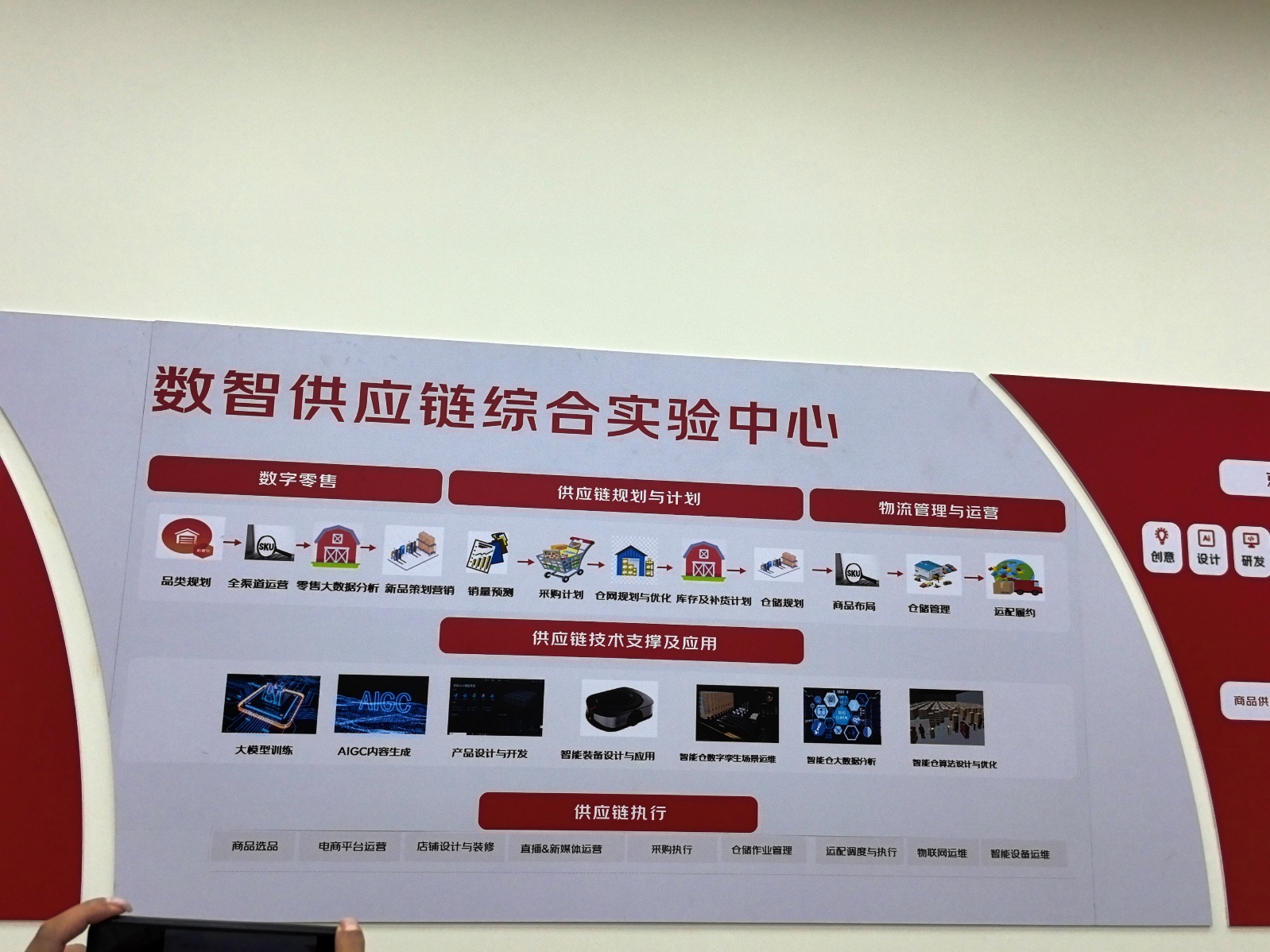 数智供应链综合实验中心:体验京东企业级仓储管理系统(WMS)、仓储控制系统(WCS)的实操流程,查看系统如何将真实业务数据脱敏后转化为教学案例,实现“产业场景进课堂、教学内容跟业务”的同步迭代;