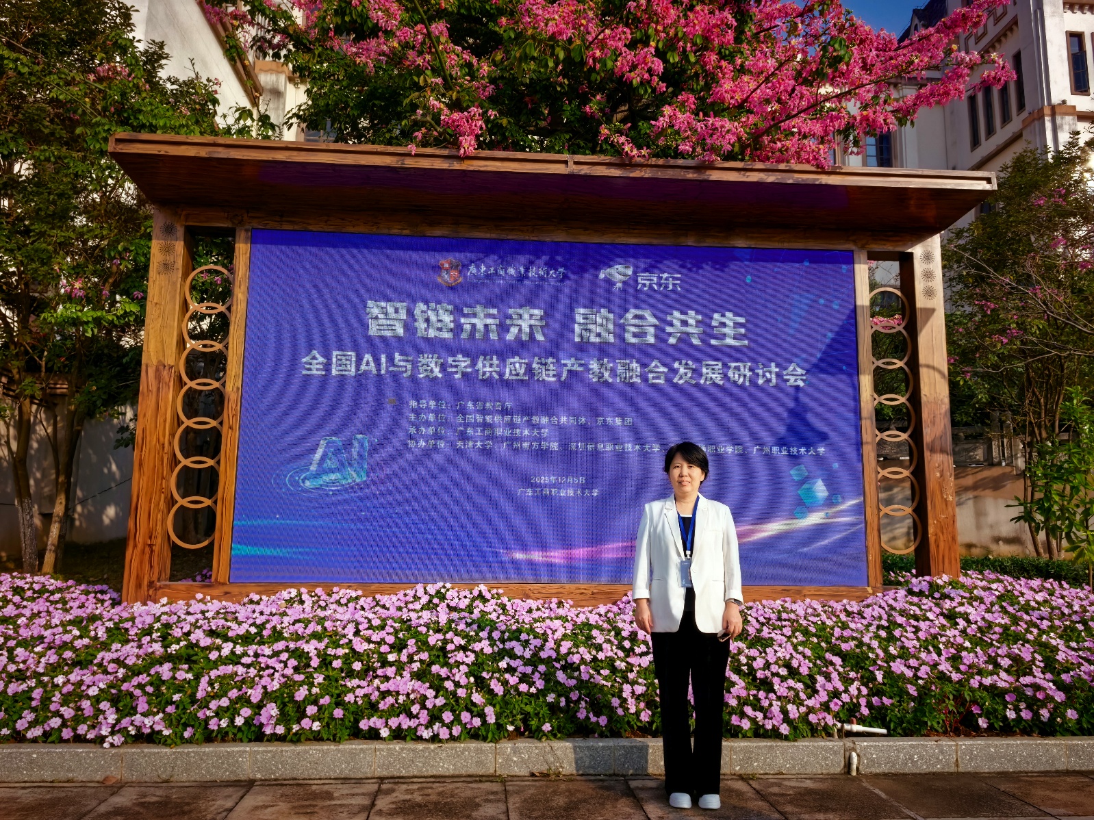 12月5日,全国AI与数字供应链产教融合发展研讨会在广东工商职业技术大学星湖校区成功举办。本次会议由全国智能供应链产教融合共同体、京东集团联合主办,汇聚了来自全国22个省(自治区、直辖市)的260余位高校及企业代表。三亚学院物流与供应链系主任卫静静受邀参会,深度参与政策研讨、案例交流及实地考察。