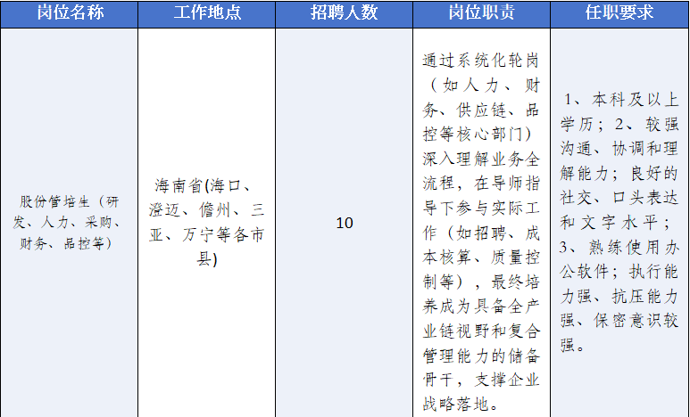 申请方式:投递方式丨Contact 工作地点:海南省(海口、澄迈、儋州、三亚、万宁等各市县)招聘公共邮箱:lnszp@luoniushan.com主要信息来源:https://mp.weixin.qq.com/s/Y4LBI8EkpqonbdbvbxFuvQ