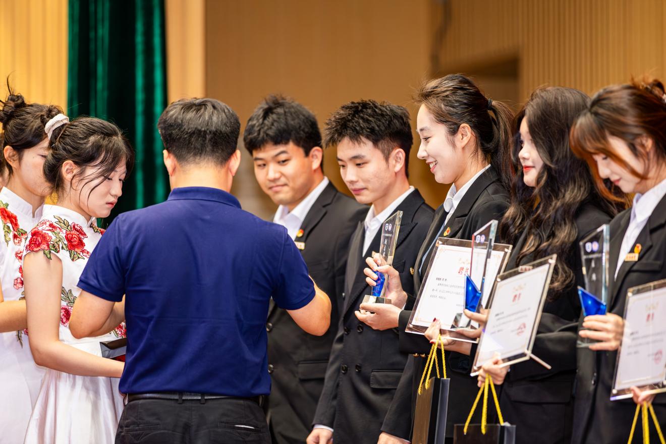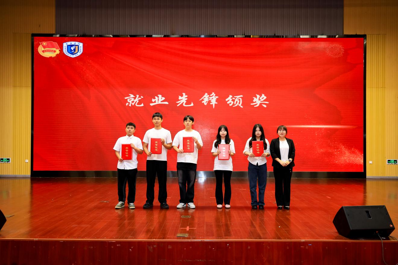 颁奖仪式上,党总支副书记陶信伟为先进集体代表授奖,团委副书记王娜为先进个人颁奖,李怡蒙、符彩花、高雯晶、李明唐、李鑫洁五位思想导师分别为专项奖项获得者颁发荣誉。每一张证书都镌刻着奋斗的足迹,每一座奖杯都承载着成长的力量。这些荣誉既是对过往成绩的肯定,更是对全体学子 “以青春之我筑时代之基” 的激励。特别值得一提的是,“就业先锋奖” 的设立,正是学院 “就业攻坚,助力起航” 工作成效的生动体现。