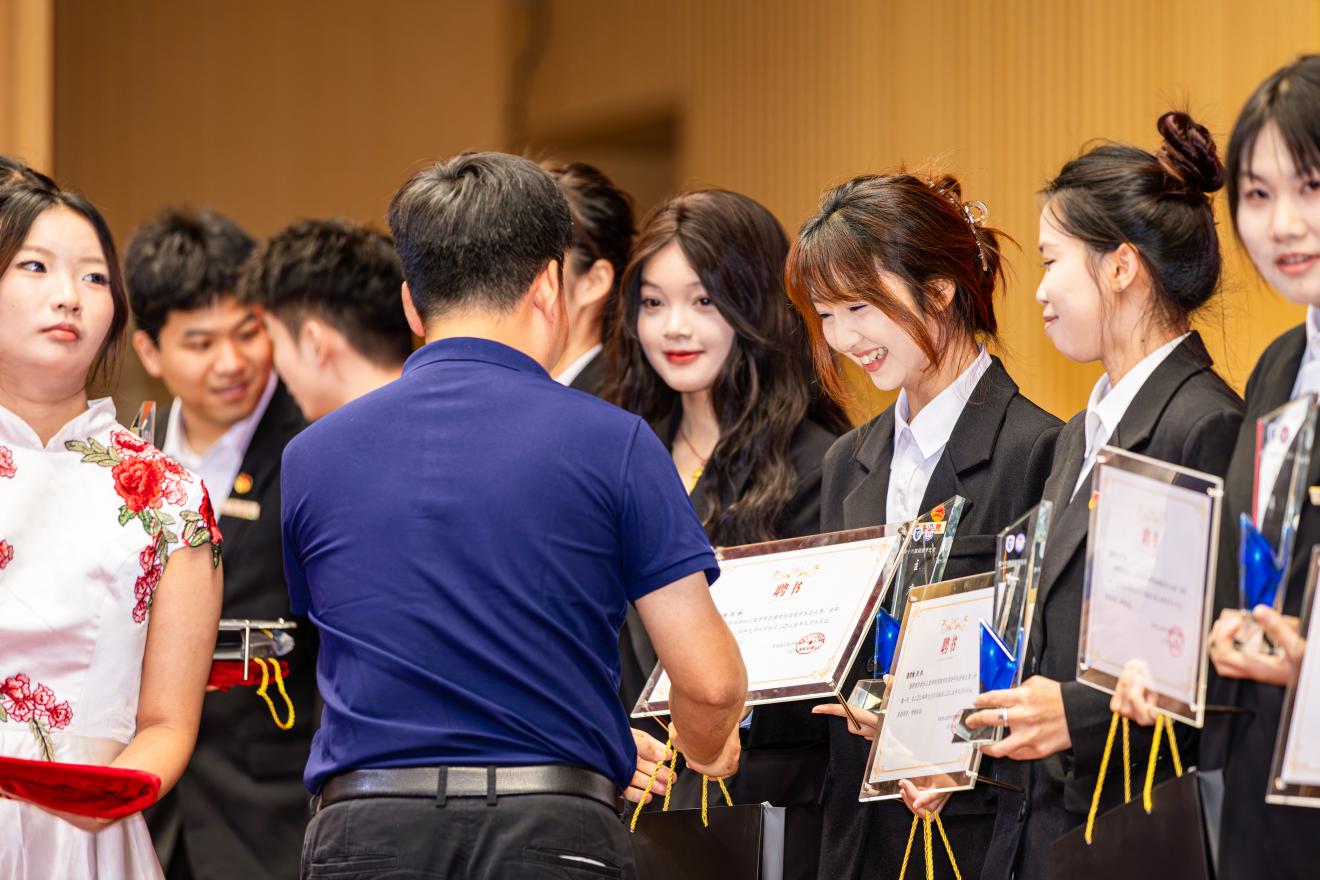 随后,党总支副书记陶信伟老师为第十六届学生干部代表逐一颁发聘书与纪念奖杯,沉甸甸的荣誉既是对他们过往在思政引领、校园文化建设等工作中辛勤付出的认可,更是对责任传承的郑重见证。