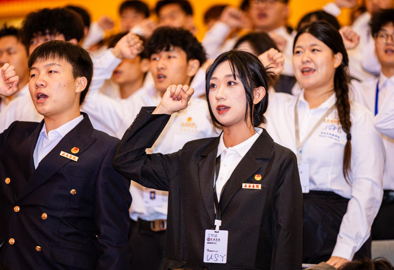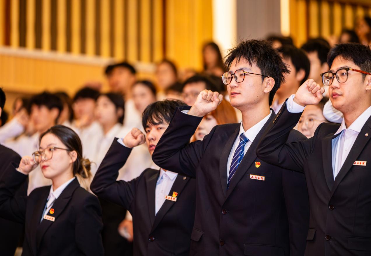誓言铮铮,初心如磐。在第十七届团委学生会副主席冯媛新的带领下,全体新任职学生干部举起右拳庄严宣誓,铿锵有力的誓言不仅是履职尽责的承诺,更展现了新时代青年的坚定信念。