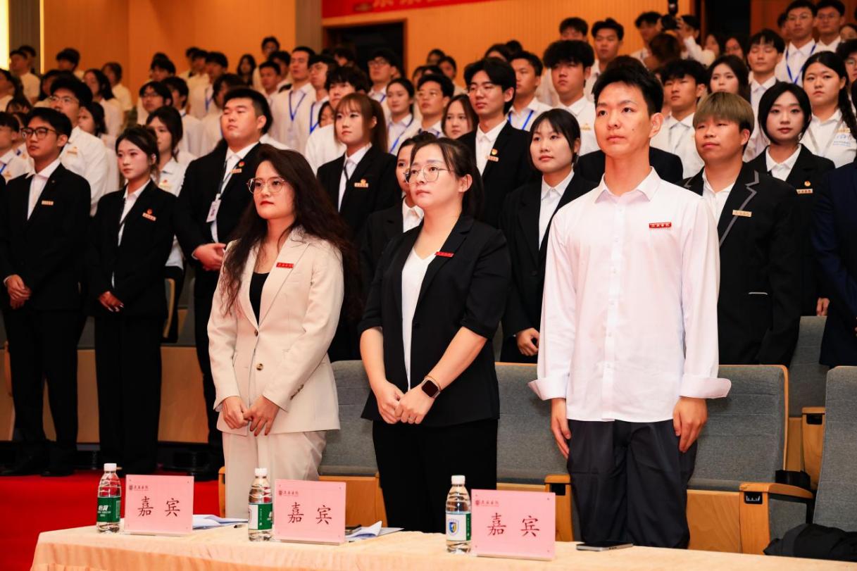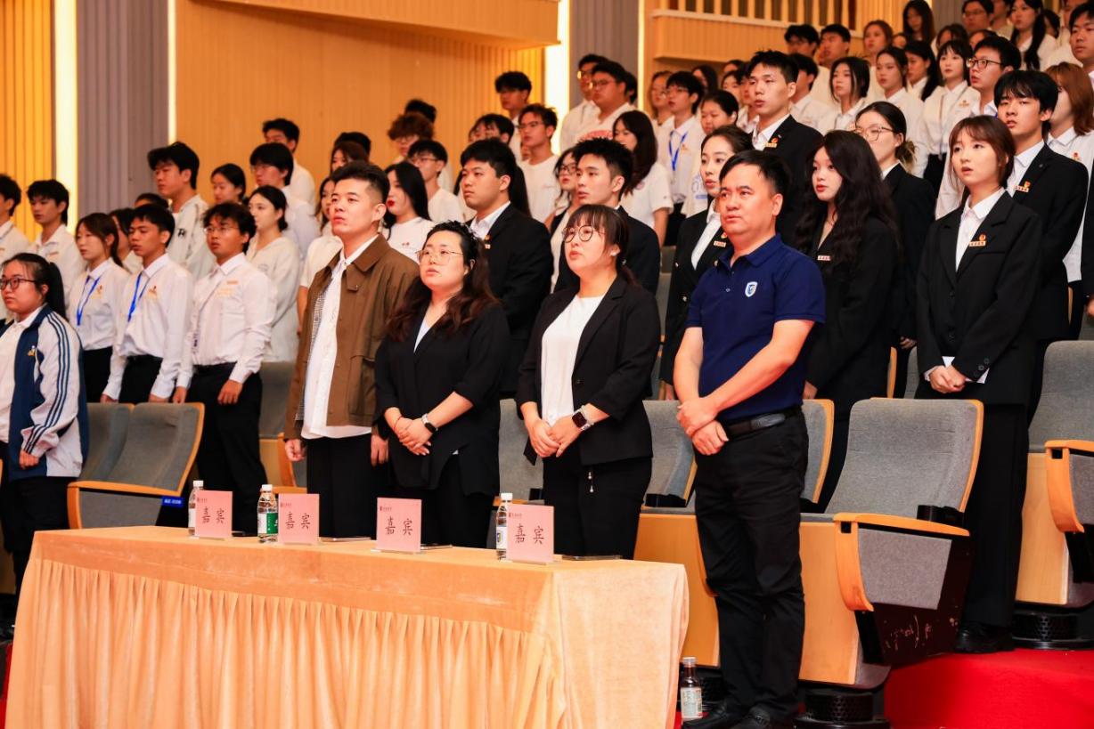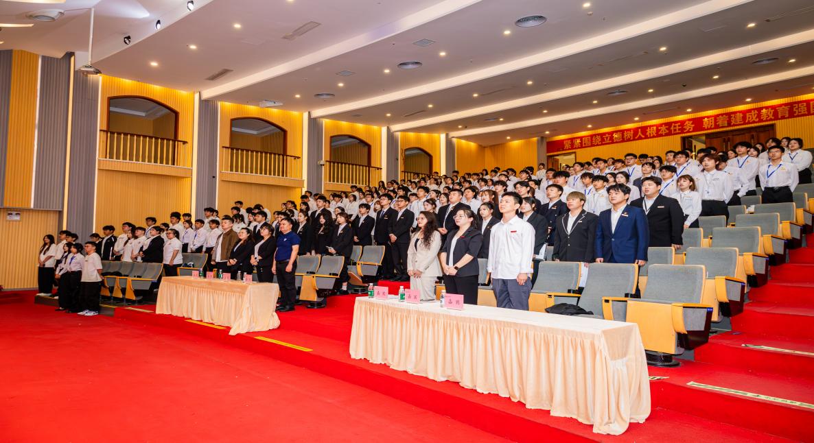 大会第一项,全体起立,奏唱国歌。国歌旋律缓缓升起,音乐深沉而有力,让在场的每一位师生都感受到了祖国的力量、荣耀与希望,激励着大家为实现中华民族伟大复兴而不懈奋斗。