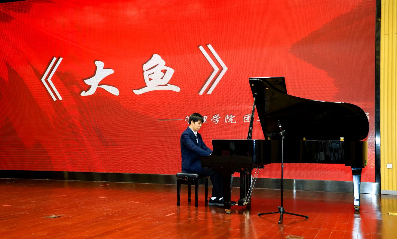 大会伊始,数字技术 2301 班耿帅同学带来钢琴曲《大鱼》演奏,悠扬旋律流淌间尽显青春诗意。随后,管理学院团委学生会文艺部的精彩舞蹈动感登场,刚柔并济的演出瞬间点燃全场气氛。在热烈的掌声中,全体师生起立肃立,雄壮的国歌声响彻会场。深沉有力的旋律激荡着每个人的爱国情怀,更激励着青年学子将个人理想融入民族复兴的壮阔征程。