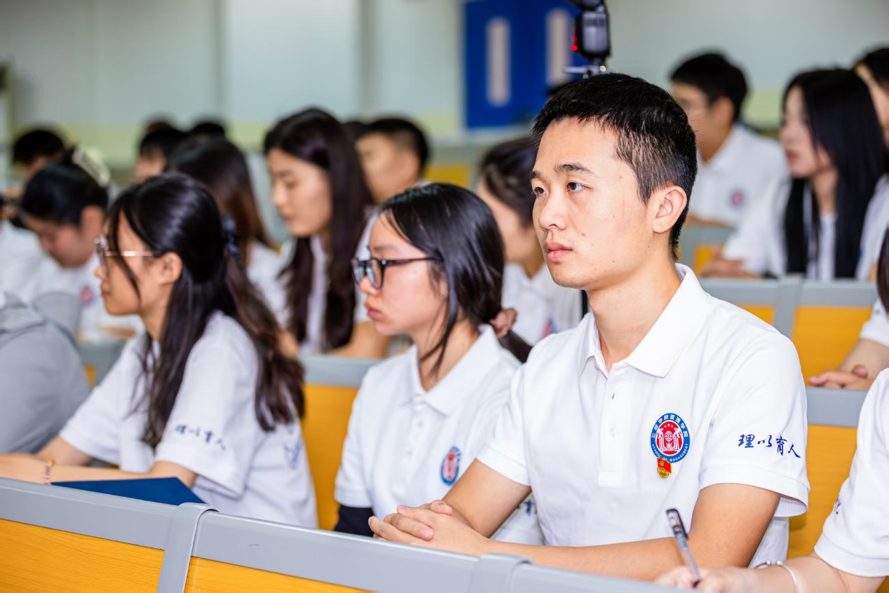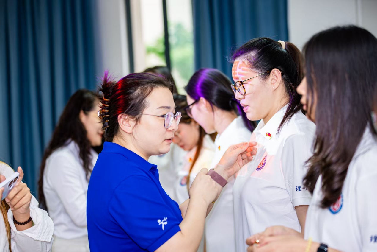 在全场注视下,大会进入庄重的党徽佩戴仪式。陶信伟书记、王娜书记与高雯晶老师共同为11名新接收的预备党员逐一佩戴党徽。当鲜红的党徽闪耀在胸前,新党员们神情坚毅、目光灼灼,面向党旗庄严表态:将以此次大会为新起点,牢记入党誓词,强化党员意识,主动向党组织汇报思想动态;在学习上刻苦钻研、争当标杆,在实践中锤炼党性、勇挑重担,在服务同学中践行使命、担当作为,绝不辜负党组织的信任与培养,努力成长为可堪大用、能担重任的时代新人。