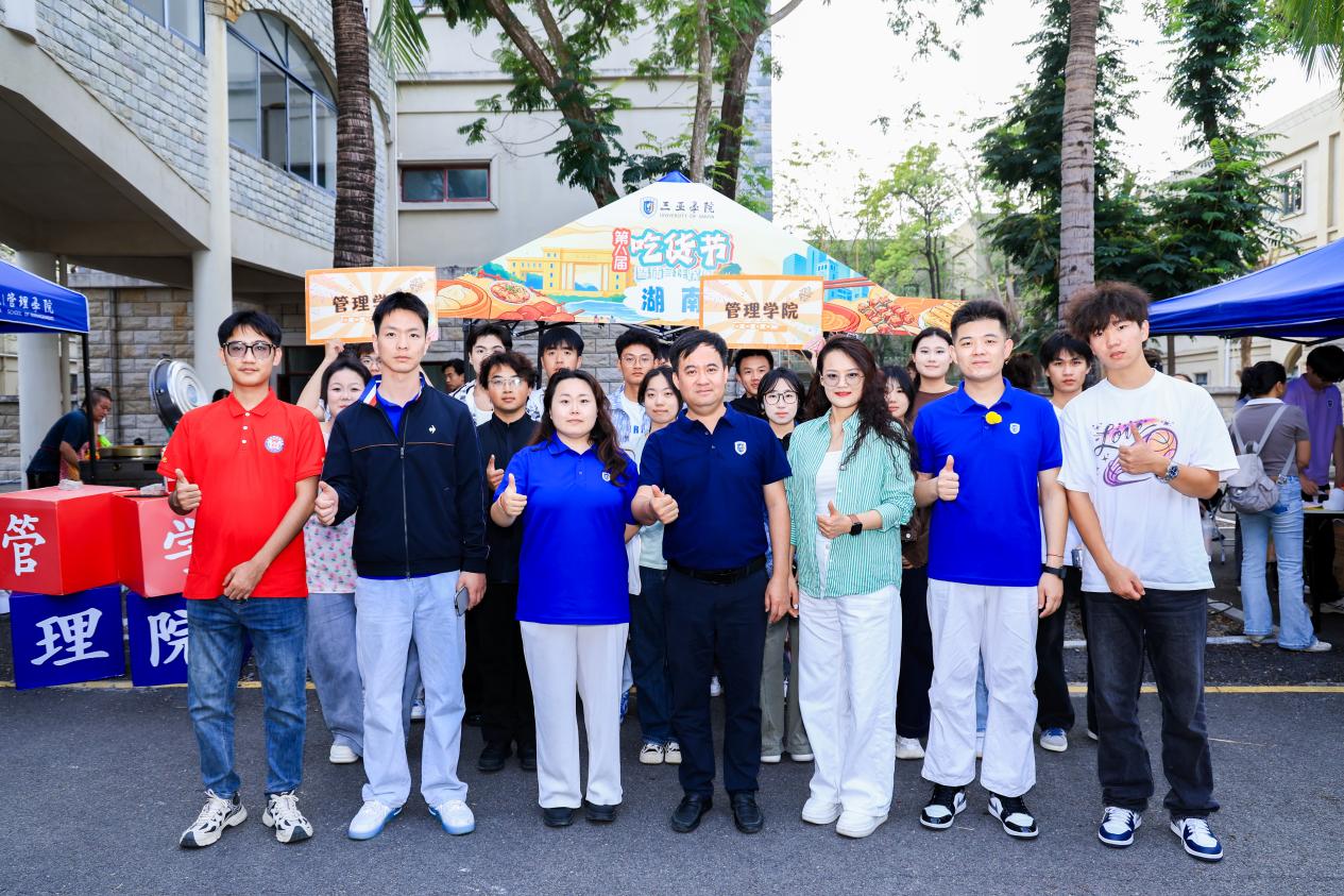 三亚学院管理学院此次全权负责湖南、山东两地的美食搜集与展示,凭借极具地域特色的风味佳肴,备受瞩目。特色美食酱香饼、公婆饼、酸梅汤等吸引了众多师生前来品尝。
