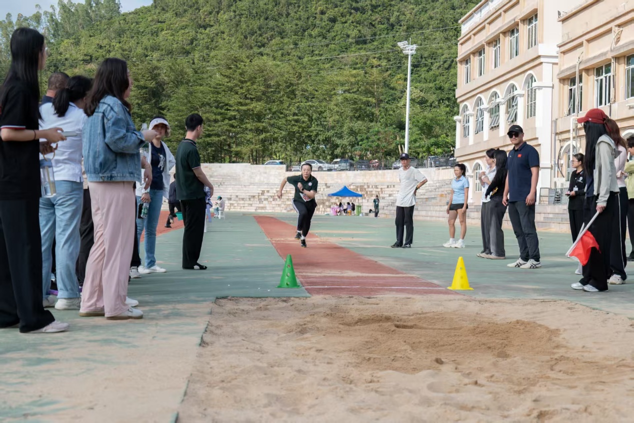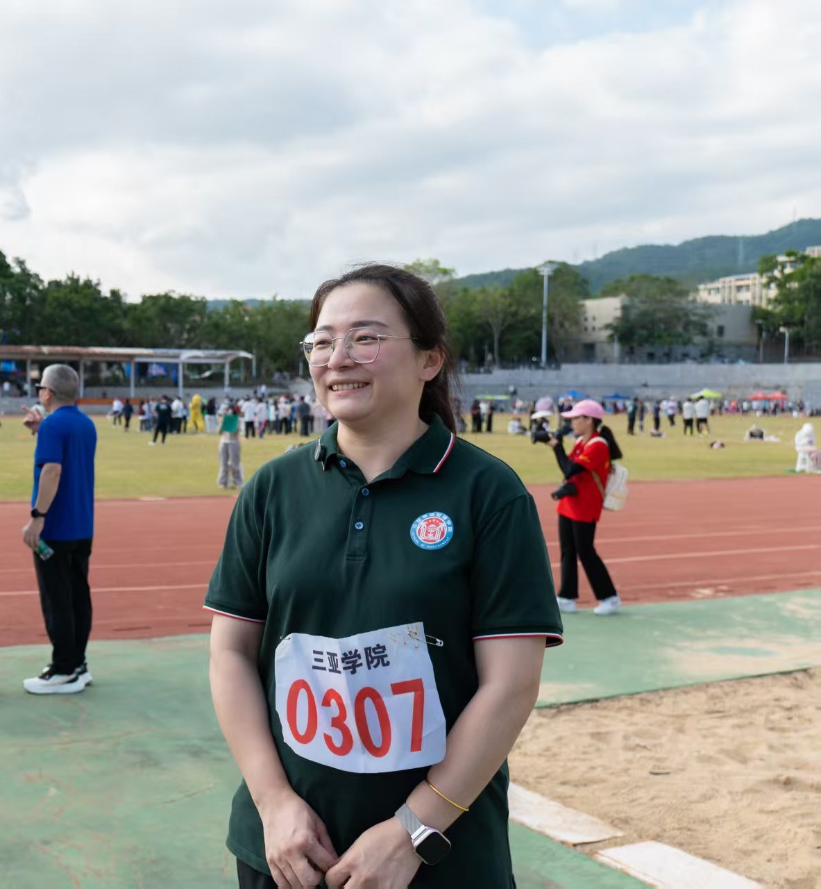 在三亚学院2025年体育欢乐节的赛场上,管理学院教职工们踊跃参与、活力满满,高雯晶老师凭借出色表现,一举夺得女子跳远项目第一名,为学院斩获荣誉。