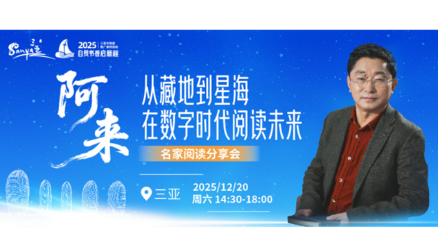 12月20日下午,著名作家阿来“从藏地到星海:在数字时代阅读未来”名家阅读分享会在三亚成功举办。本次活动由三亚市旅游和文化广电体育局指导,三亚市公共文化中心主办,三亚市图书馆承办,阿来书房协办,吸引了社会各界文学与科技爱好者参与。三亚学院盛宝金融科技商学院师生代表到场聆听,与文学大家面对面,共话数字时代下科技与人文的融合发展