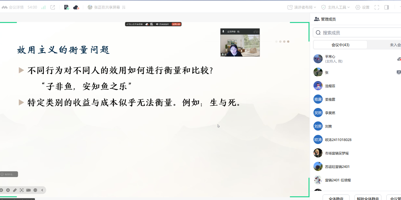 提出了四种核心的伦理原则,即效用主义;道德权利;正义原则以及关怀伦理。关于企业的社会责任,张博士阐述了企业社会责任的四个基本维度,即经济、法律、伦理和慈善。回顾了企业管理理念的演进:从“股东至上”的盈利思维,发展到“利益相关者理论”,再到“三重底线”和“创造共享价值”的现代理念,体现了对企业责任认知的深化。强调了ESG(环境、社会、公司治理)作为衡量企业可持续发展的重要标准,并讨论了当前ESG实践中面临的挑战,如范围三排放的核算困难、评级体系不一以及“漂绿”现象。关于营销伦理,从产品、价格、分销渠道、促销四个方面剖析了营销中的伦理问题,并展望了数字经济时代下,大数据、AI、算法推荐、KOL(Key Opinion Leader)营销带来的新伦理挑战,如信息茧房、隐私泄露等问题。