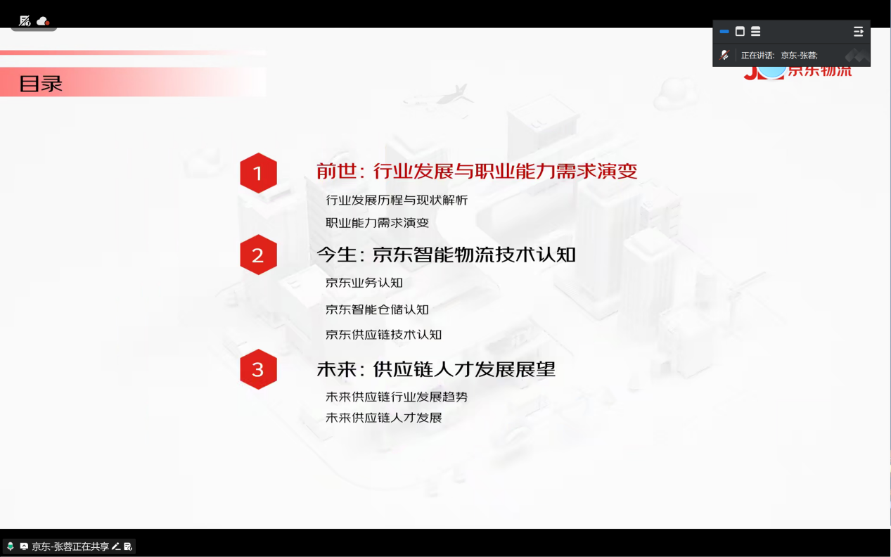 1月9日晚,京东物流集团教育产业总监张蓉应邀为供应链管理2401班学生开展了一场题为《数智供应链行业趋势与人才发展》的专题讲座。讲座围绕京东集团在智能供应链领域的产业实践与人才需求展开,为学生带来了一场兼具前沿视野与实践价值的知识盛宴,从校企协同育人角度,帮助青年学子精准把握行业发展脉搏,明晰未来职业成长路径。