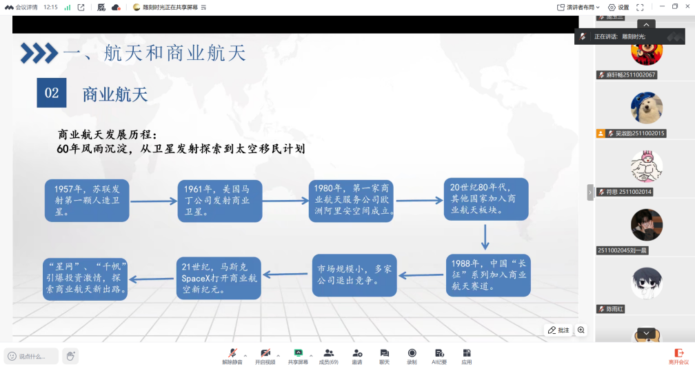 同时,李老师对比中外发展态势,解读我国相关支持政策,指出商业航天作为战略性新兴产业,具有高技术、高风险、高效益特点,市场潜力巨大。本次讲座让同学们深入了解商业航天商业逻辑与发展前景,拓宽了专业视野,为相关领域学习与实践奠定基础。