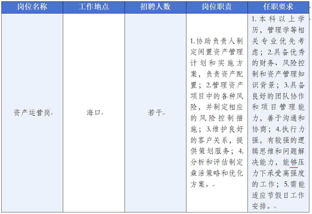 招聘岗位及要求: