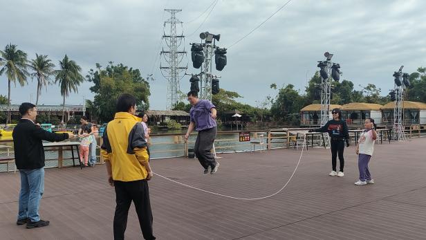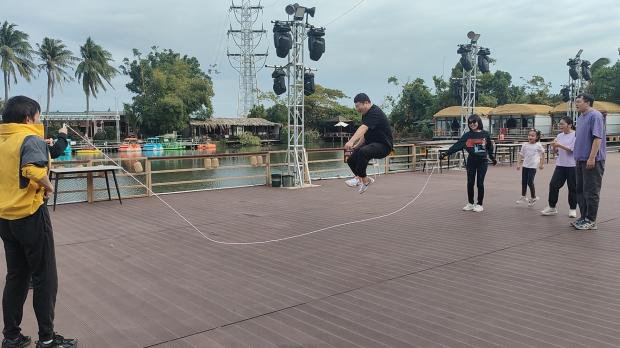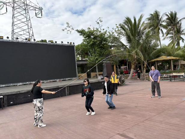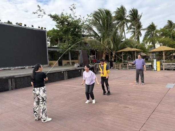 团建游戏环节,成为老师们放松身心、增进默契的精彩时刻。“丢沙包”游戏现场,老师们褪去平日的严谨,重拾童年乐趣:投手精准预判、果断出手,躲闪者灵活走位、巧妙规避,被沙包击中的老师笑着加入投手阵营,现场不时响起阵阵爽朗的笑声;“跳大绳” 项目中,两位老师默契配合挥绳,其余老师依次列队、同步起跳,从最初的节奏磨合到后来的流畅衔接,大家在一次次协作中拉近了距离、凝聚了共识。两个小时的趣味游戏,不仅让老师们在运动中释放了压力,更在轻松愉悦的氛围中锤炼了团队协作意识,展现了工程管理专业教师队伍劳逸结合、团结奋进的良好状态。