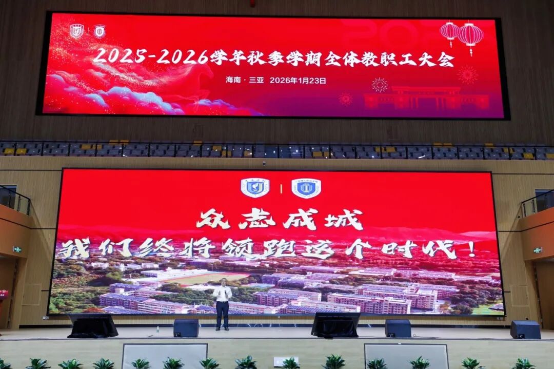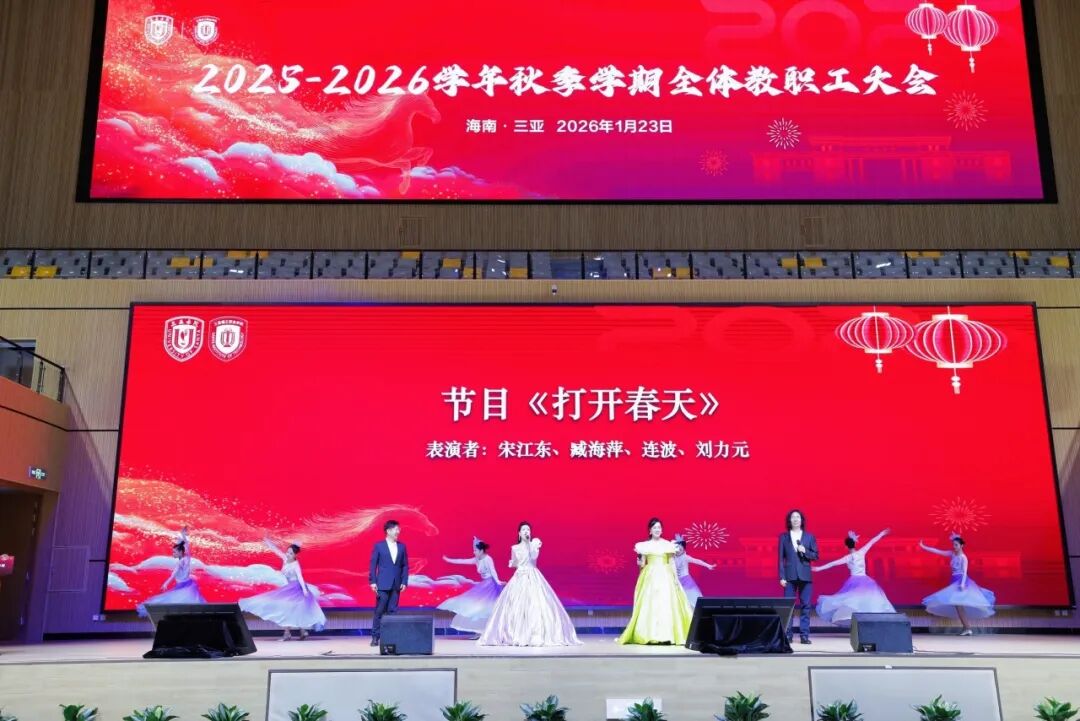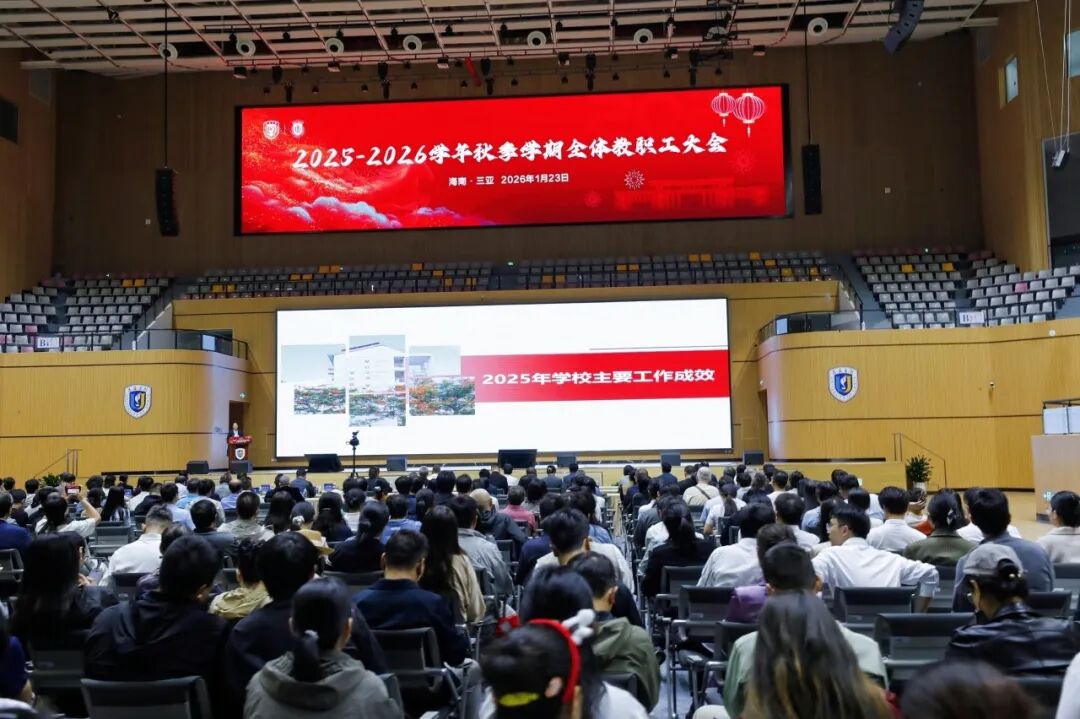 冬日暖阳映初心,奋进实干启新程。1月23日,三亚学院2025-2026学年秋季学期全体教职工大会暨2025年USY进取者表彰大会在书艺馆隆重召开。全体教职工齐聚一堂,总结过往成效,共话改革使命,表彰先进典型,以昂扬姿态迎接新的挑战与机遇。