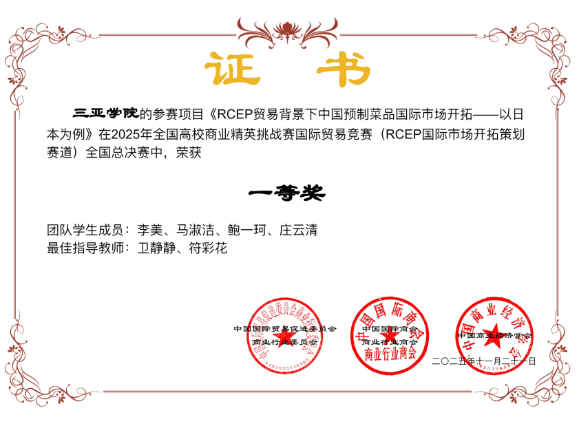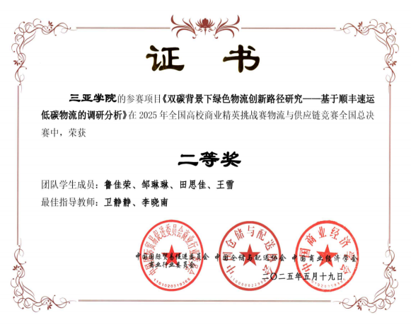 专业高度重视学生创新创业能力培养,支持学生参与物流相关创业项目。2025年,学子在各类顶级赛事中屡创佳绩:在全国高校商业精英挑战赛物流与供应链竞赛全国总决赛中,师生凭借扎实的专业实力、创新的实践方案和卓越的团队协作精神,斩获3个二等奖、1个三等奖及“优秀组织奖”;在11月举办的全国高校商业精英挑战赛国际贸易竞赛全国总决赛上,李美同学团队凭借扎实功底、创新思维与出色实战能力脱颖而出,荣获全国一等奖,为学校赢得荣誉。