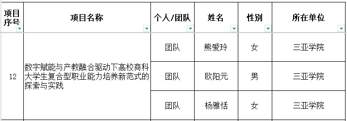 11月,中共海南省委人才工作领导小组办公室正式公示了海南省第二批南海新星项目人员名单,管理学院熊爱玲、欧阳元、杨雅恬三位老师获批立项教育人才(团队)项目,这也是管理学院代表学校连续两届成功获批此项重要项目,彰显了专业师资的过硬实力。