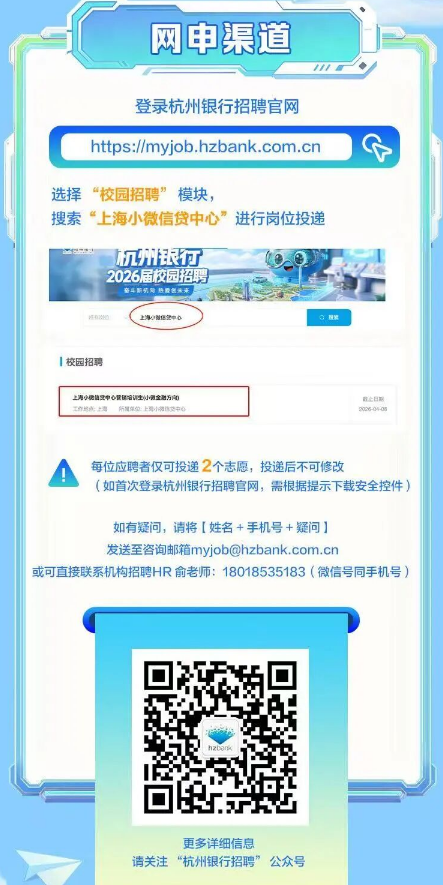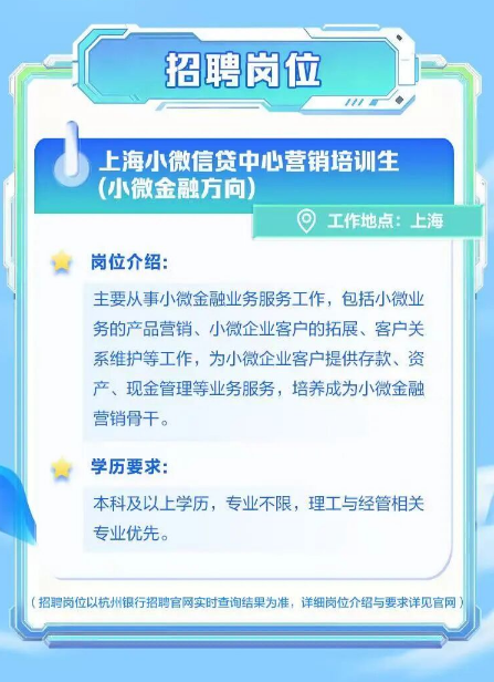 杭州银行上海小微信贷中心2026届春季校园招聘