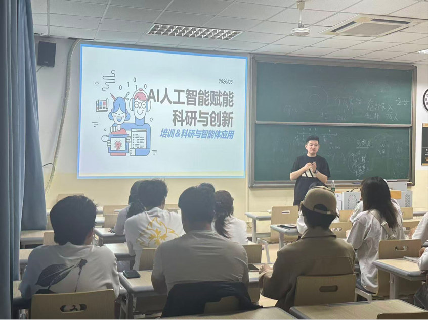 培训分批次面向研究生与大二学生开展,思想导师李明唐担任主讲人。针对研究生群体,李老师依托学校超算中心与产业学院资源,结合金融科技、现代服务业等自贸港重点产业案例,详细演示AI在文献检索、数据分析、智能体搭建等学术科研场景的应用。面向大二学生,培训聚焦AI伦理与规范使用,引导学生辩证看待技术价值,在善用智能工具赋能学习的同时,坚守伦理底线,保持独立思考与创新能力。