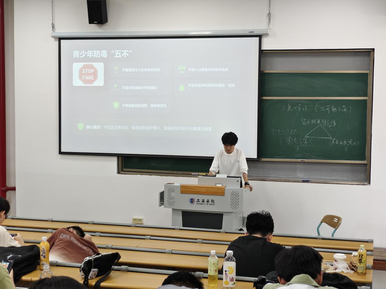 毒品是侵蚀青春、危害社会的毒瘤,校园禁毒教育是守护青年成长的关键一环。本次活动中,学院各班团支书充分发挥先锋带头作用,主动扛起班级禁毒学习教育责任,以主题班会、知识宣讲、案例剖析、互动讨论等多样化形式,面向全班同学开展系统性禁毒学习。各班团支书精心准备学习内容,不仅细致讲解传统毒品、合成毒品及新型伪装毒品的种类、特征与危害,还结合真实案例,深刻剖析毒品对个人健康、家庭幸福、社会稳定造成的毁灭性伤害,重点科普青少年易沾染毒品的诱因、防范毒品的实用技巧以及相关法律法规知识。课堂上,同学们认真聆听、积极交流,主动分享自己对毒品危害的认知,在沉浸式学习中认清毒品的狰狞面目,树牢“远离毒品、抵制毒品”的思想防线,真正让禁毒教育入脑入心,实现全院班级禁毒学习教育全覆盖。